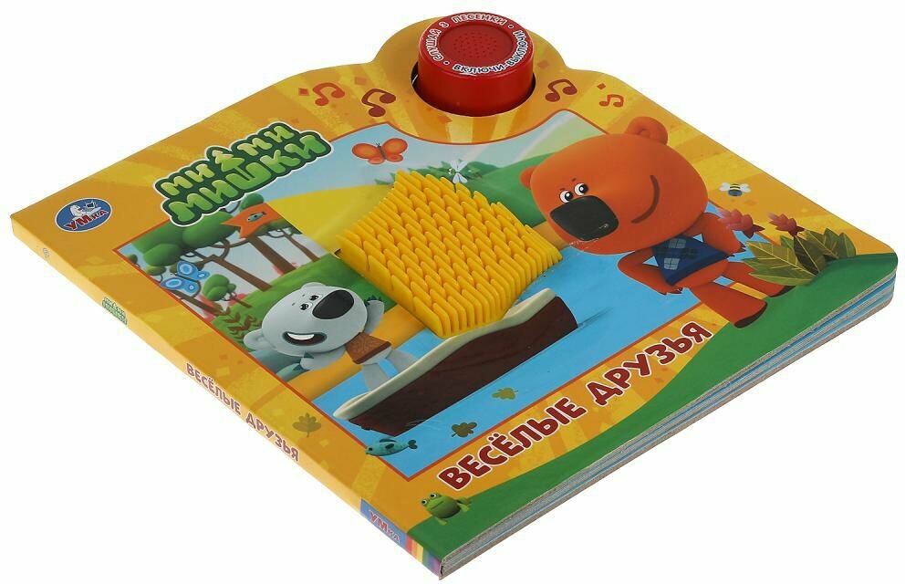 Ребёнок с удовольствием будет листать плотные картонные страницы, рассматривать красочные картинки, читать вместе с родителями про приключения любимых персонажей, а также нажимать на кнопку и слушать весёлые песенки. Для привлечения большего внимания малыша к книге и развития его сенсорики на обложке имеется элемент из приятного на ощупь силикона. Благодаря компактному формату книгу удобно брать с собой в дорогу.