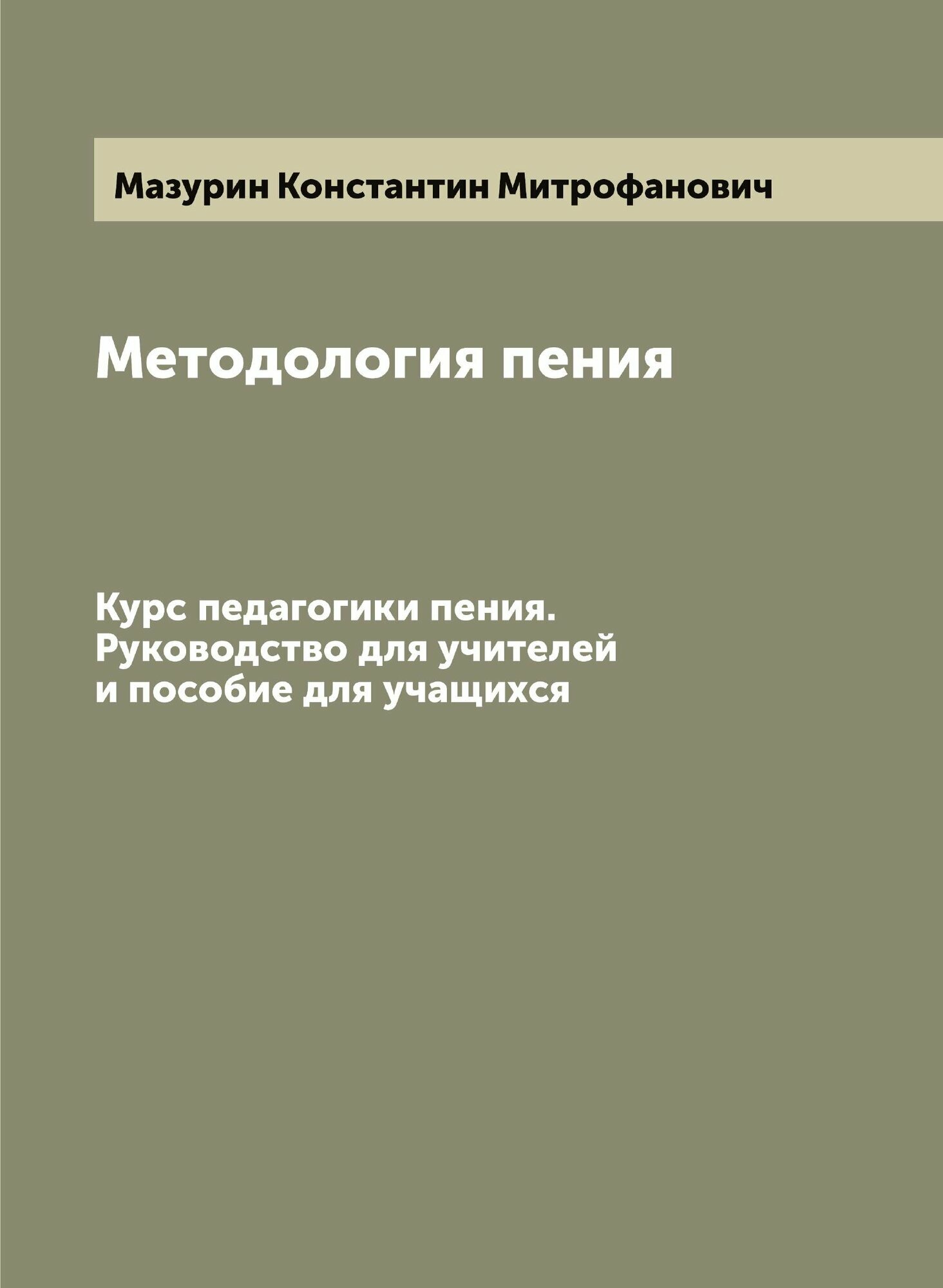 Книга Методология пения. Курс педагогики пения. Руководство для учителей и пособие для ... (Мазурин Константин Митрофанович), 2022