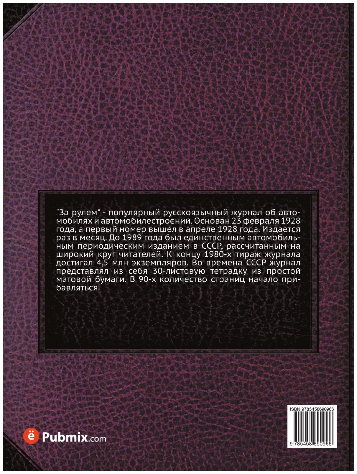 "За рулем" - популярный русскоязычный журнал об автомобилях и автомобилестроении. Основан 23 февраля 1928 года, а первый номер вышел в апреле 1928 года. Издается раз в месяц. До 1989 года был единственным автомобильным периодическим изданием в СССР, рассчитанным на широкий круг читателей. К концу 1980-х тираж журнала достигал 4,5 млн экземпляров. Во времена СССР журнал представлял из себя 30-листовую тетрадку из простой матовой бумаги. В 90-х количество страниц начало прибавляться.