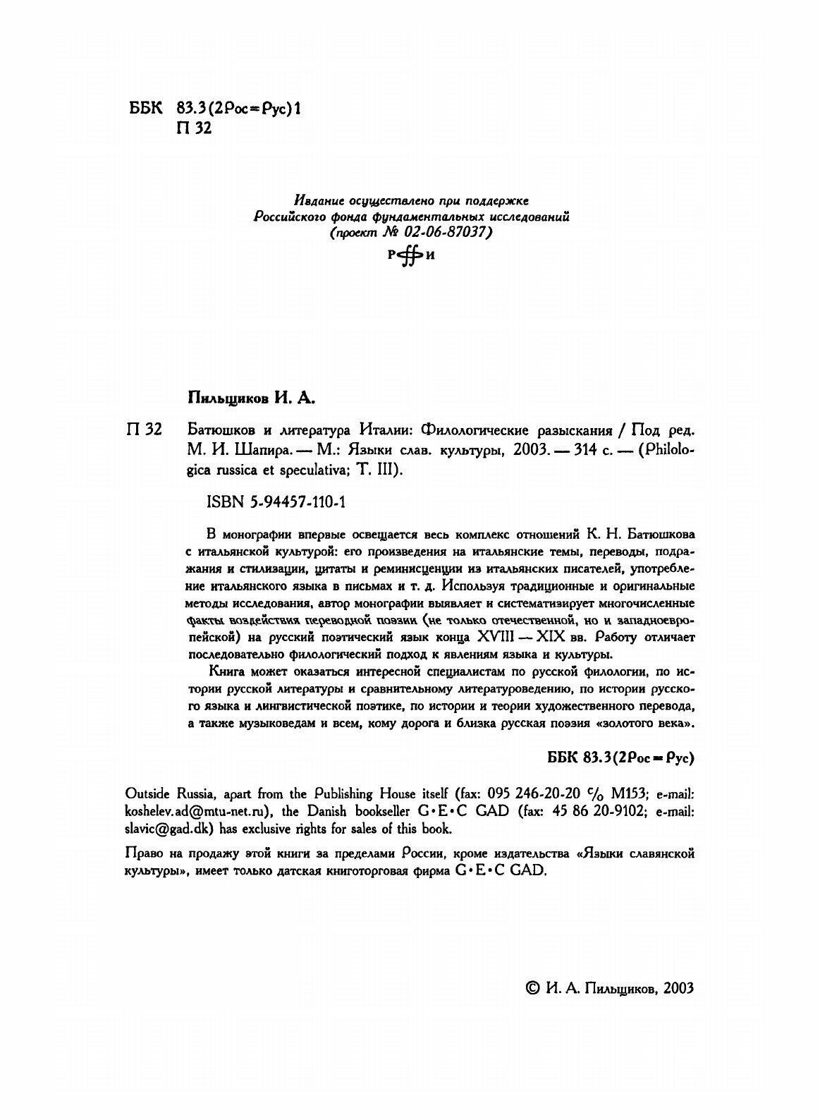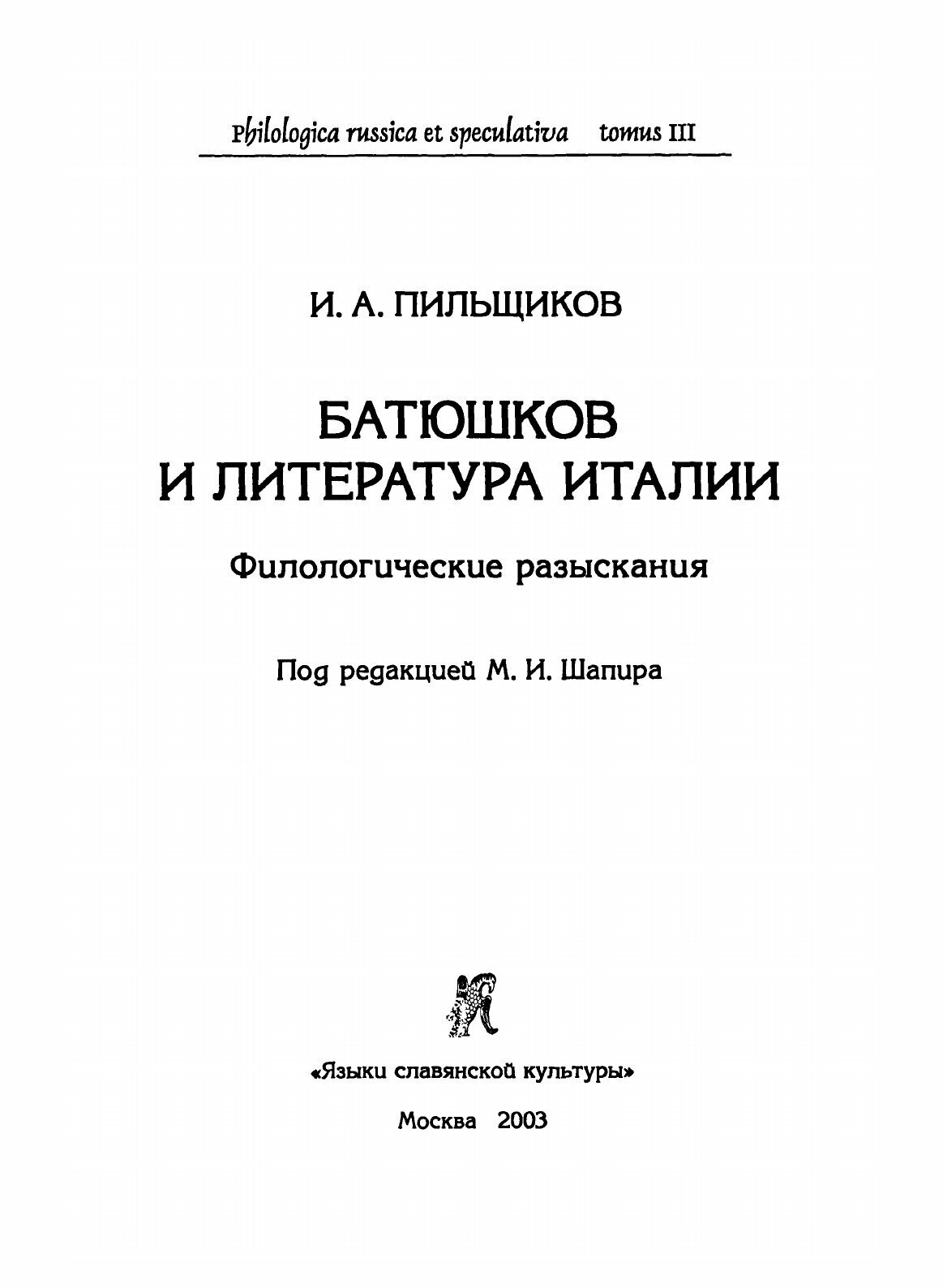 Книга Батюшков и литература Италии Филологические Разыскания (Пильщиков Игорь Алексеевич), 2003
