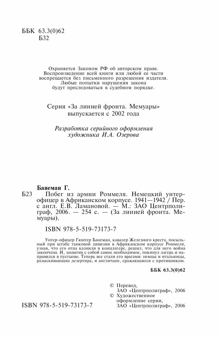 Книга Побег из армии Роммеля Немецкий унтер-офицер в Африканском корпусе 1941-1942 (Банеман Гюнтер), 2022