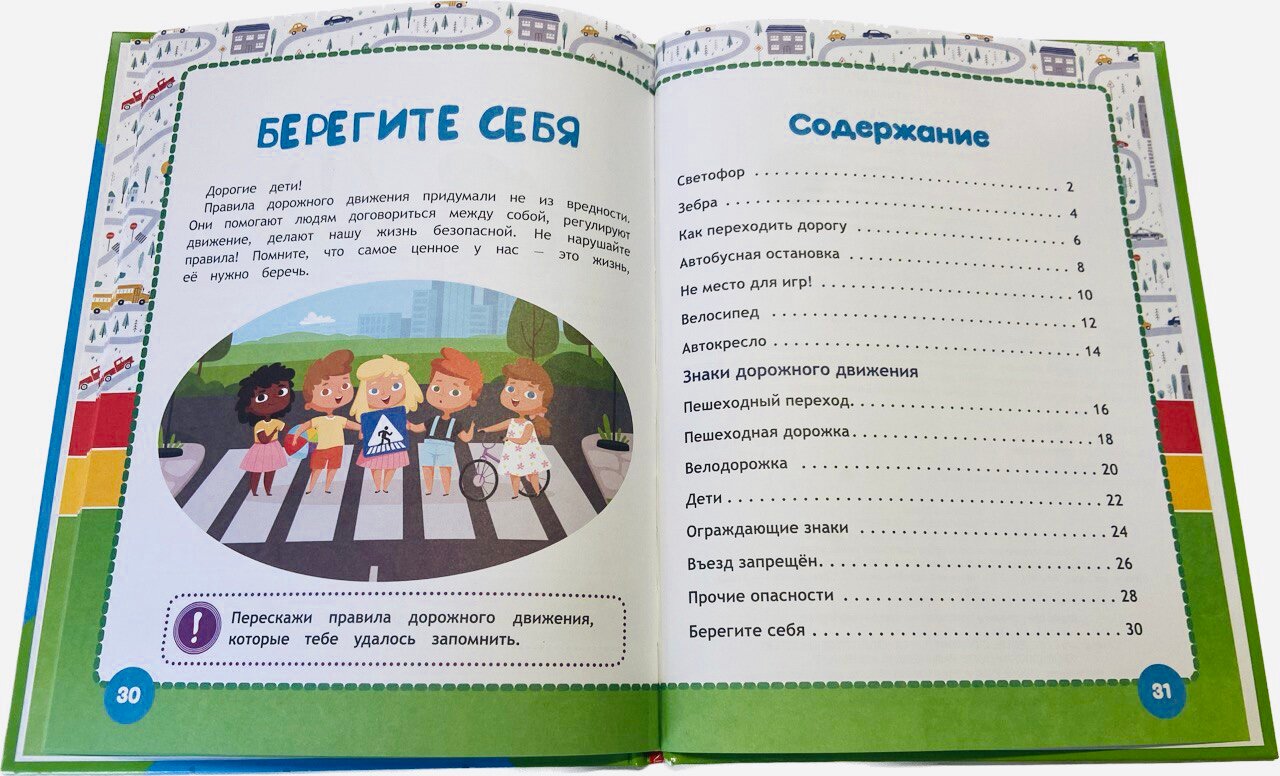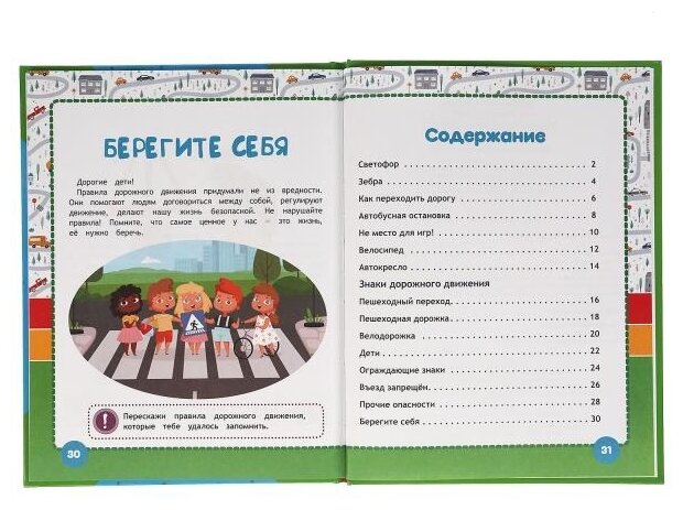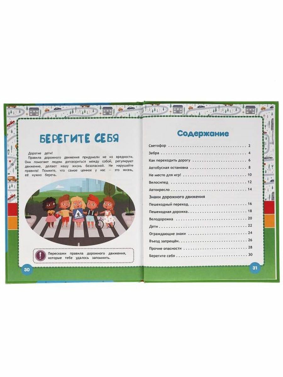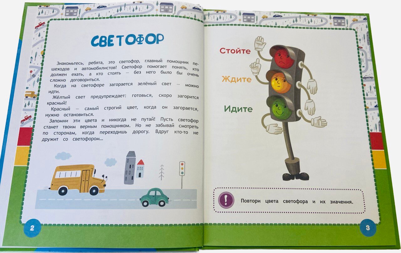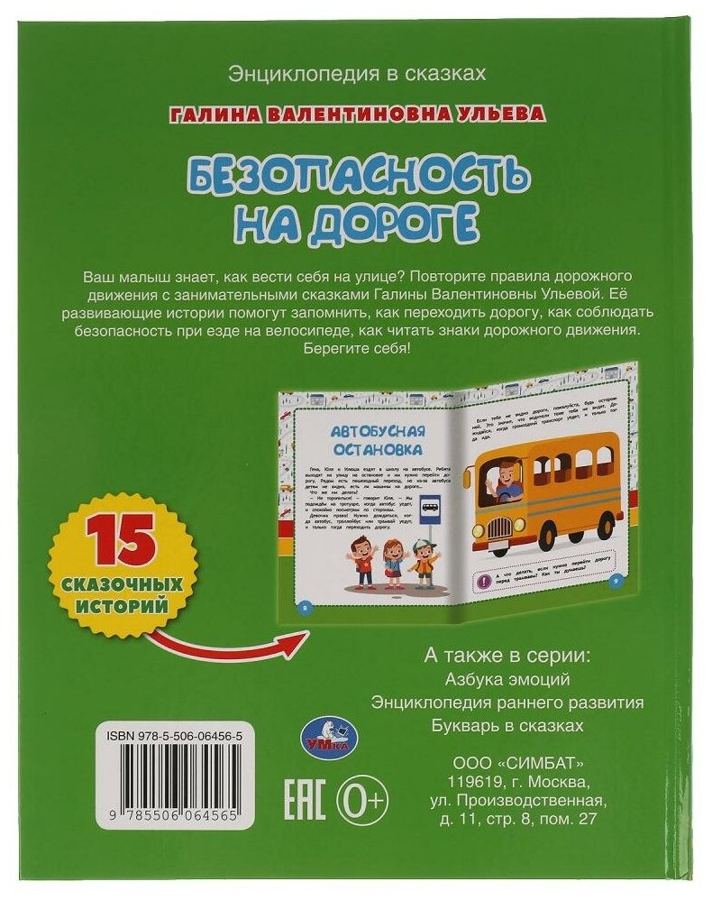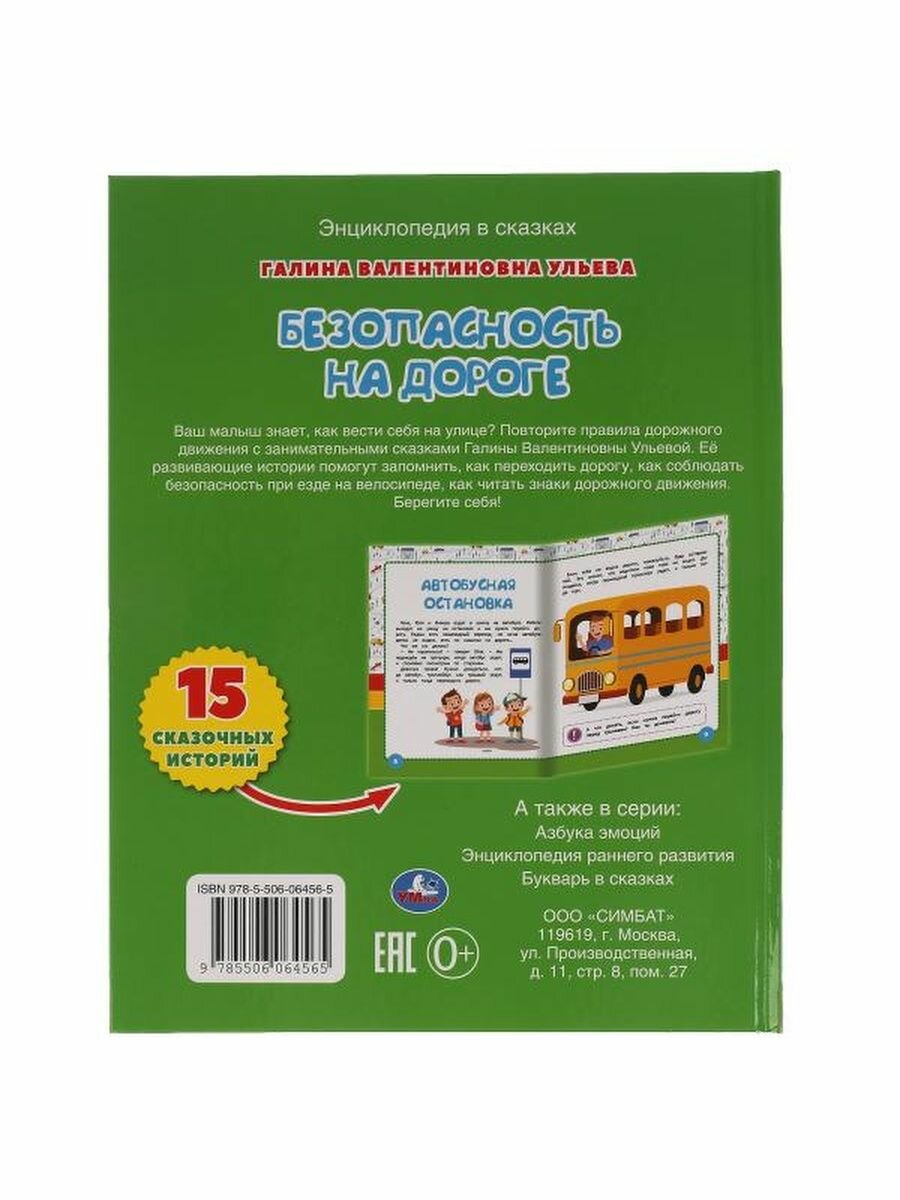 В эту книгу вошли чудесные авторские сказки Галины Ульевой, которые в игровой манере познакомят малыша с правилами поведения на улице и проезжей части. Ребёнок с удовольствием будет рассматривать яркие иллюстрации, слушать интересные истории про очаровательных зверят и выполнять занимательные задания, которые помогут крепко усвоить материал. Благодаря удобному формату книжку можно взять с собой в дорогу.