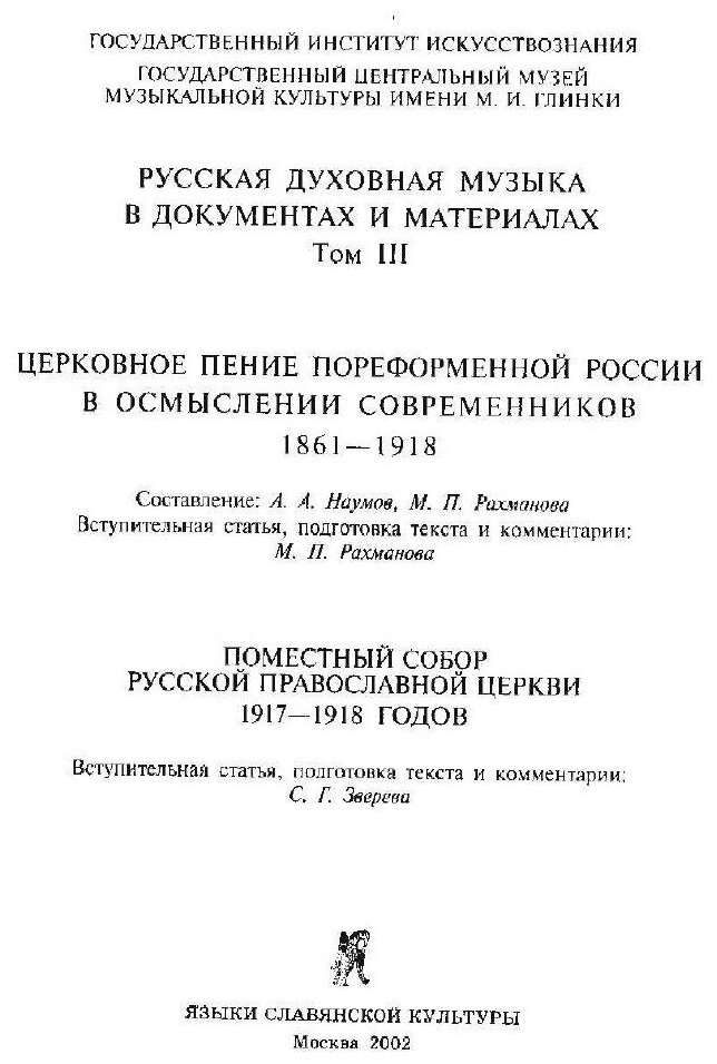 Книга Русская духовная музыка в документах и материалах. Том III. Церковное пение пореф... (Рахманова Марина Павловна; Зверева Светлана Георгиевна), 2002