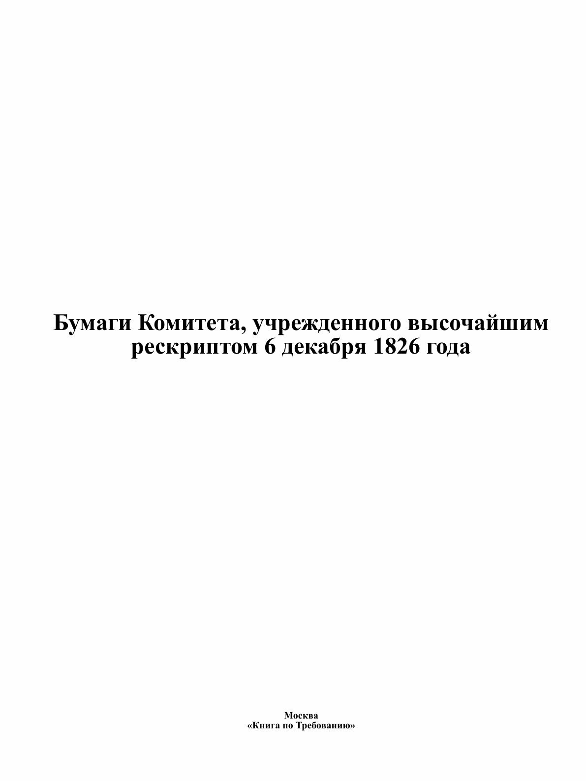 Книга Бумаги Комитета учрежденного высочайшим рескриптом 6 декабря 1826 года (без автора)
