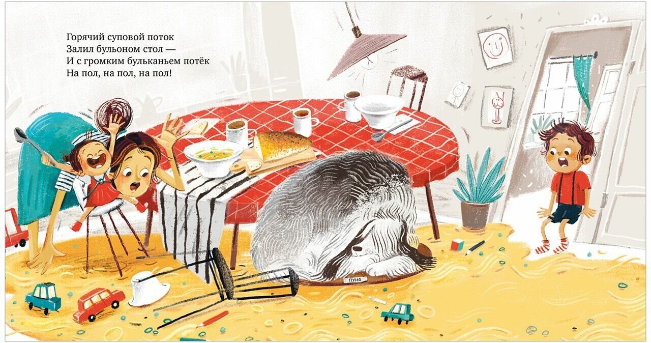 «Только не суп!» - забавная история о приключениях, которые случаются на ровном месте и исключительно в детском воображении! Стихи в прекрасном переводе Елены Фельдман легко запомнятся, а небанальный сюжет заставит перечитывать эту книжку снова и снова. Что может случиться во время обеда? Ничего, подумаете вы. А если заснуть над тарелкой супа? Вот тут-то и начинаются настоящие приключения! «Я оседлал волну, ура! Вокруг лапша летала… И только младшая сестра задорно хохотала».