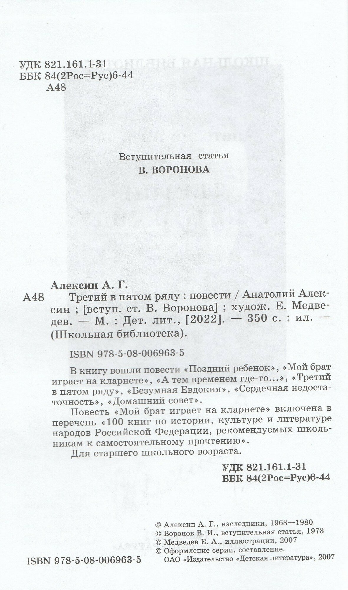 Книга Третий в пятом ряду (Анатолий Георгиевич Алексин); Детская литература, 2022
