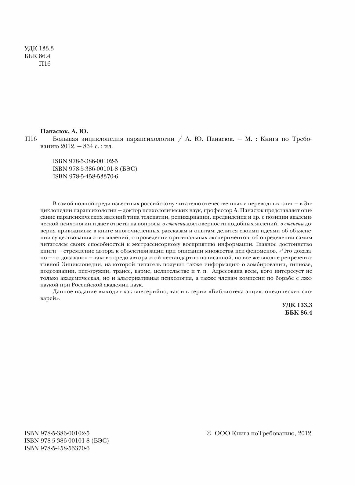 Книга Большая Энциклопедия парапсихологии (Панасюк Александр Юрьевич), 2012