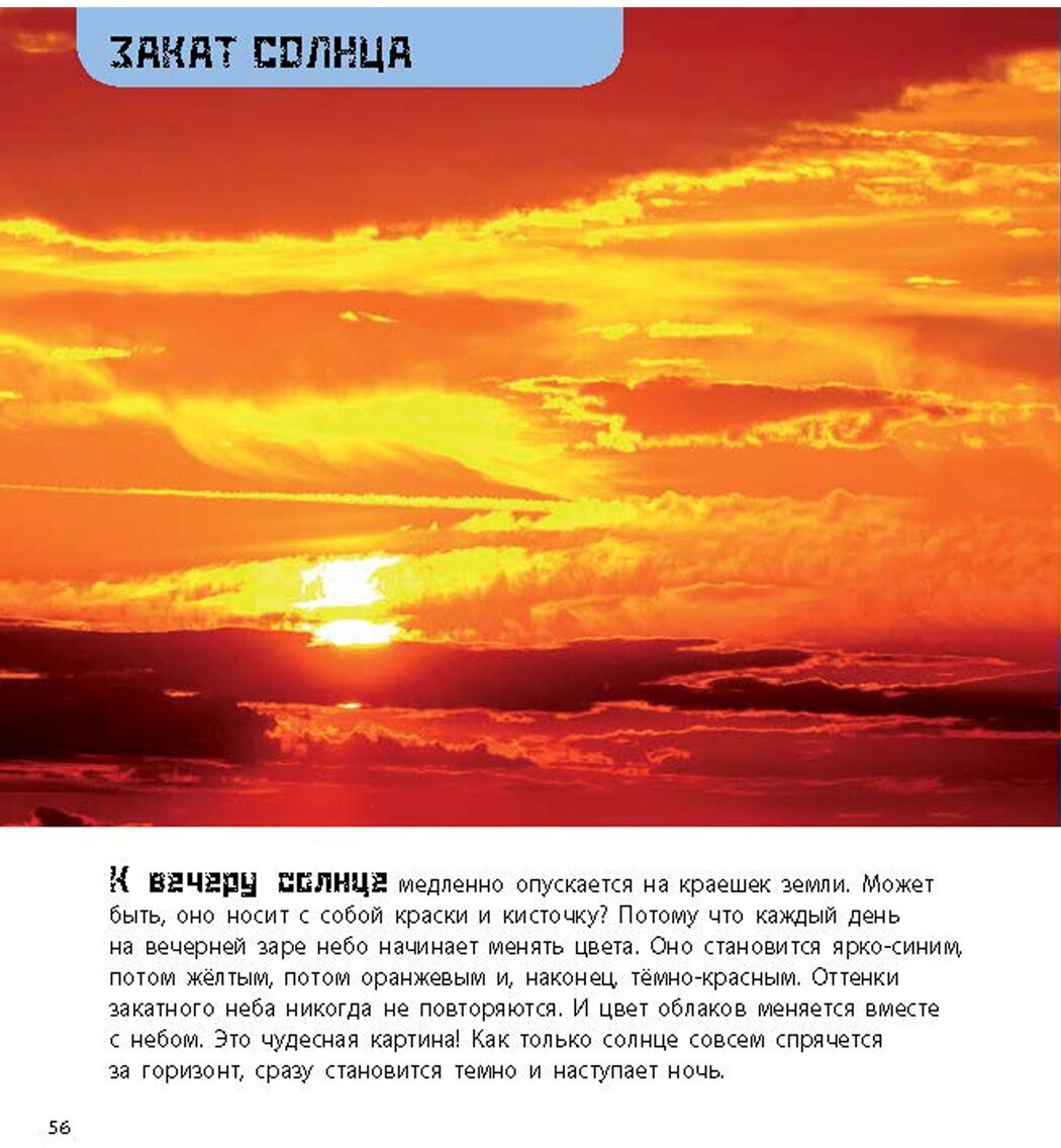 В этой познавательной книге с великолепными фотографиями и забавными авторскими рисунками собраны истории о самых захватывающих и необычных явлениях природы. Погода каждый день меняется. Сегодня яркое солнце и синее небо, а завтра наползут грозовые облака и пойдёт дождь. Сегодня ветер настолько сильный, что сбивает с ног, а завтра тихо и торжественно полетят на землю белые снежинки. Погода – большая затейница, у неё в запасе немало невероятных сюрпризов. Среди них снежная метель, величественное торнадо, гроза, северное сияние и многое другое.
