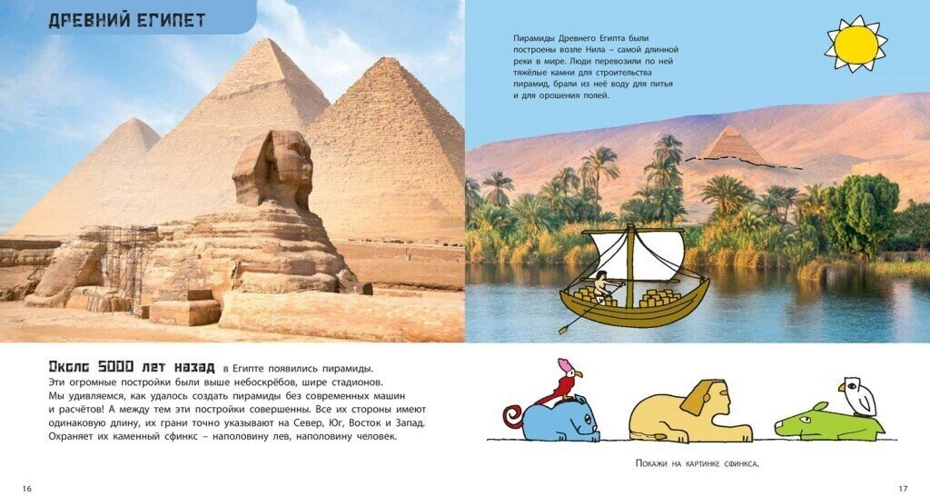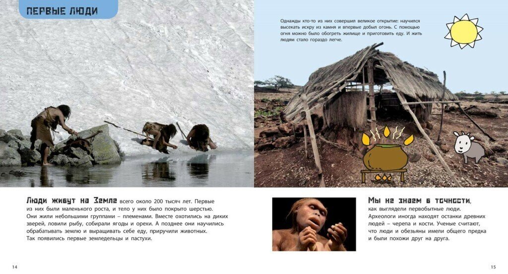 Эта книга с великолепными фотографиями и веселыми авторскими рисунками представляет собой краткий экскурс в историю человеческой цивилизации. Маленький читатель узнает, что появлению человека на Земле предшествовали миллионы лет, в течение которых на безжизненной планете появились первые живые существа, которые впоследствии развились в самые разные формы. А всего за 200 тысяч лет человечество прошло огромный путь от первобытного состояния до появления первых космических кораблей! Каждая веха развития человечества – от первобытных людей до первых земледельцев, от Средневековья до эпохи географических открытий, от первых автомобилей до современных компьютеров – представлена кратко и наглядно, а забавные вопросы к читателю на каждом развороте позволят ребенку лучше запомнить материал.