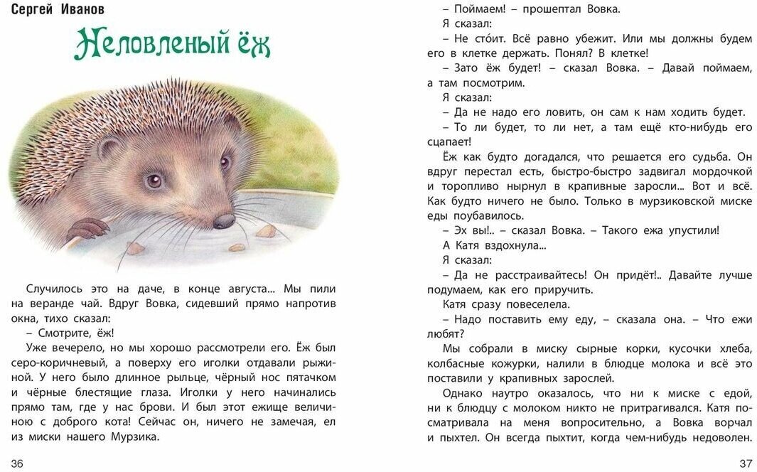 Ёжик, пожалуй, из всех лесных жителей чаще всего встречается человеку. Кого ещё можно так легко увидеть в пригородном лесу или даже на дачном участке? Только птиц или белок на деревьях. А ёжики, благодаря своей колючей шубке, чувствуют себя уверенно и смело шуршат в траве с наступлением темноты. На них можно любоваться, их можно кормить, с ними можно подружиться! И дети, и взрослые рады этим симпатичным, сообразительным и храбрым (ежу даже ядовитая змея не страшна!) зверюшкам. Ёжики давно стали популярными героями сказок, рассказов, мультфильмов... Русские писатели создали немало произведений, где говорится о дружбе людей и колючих лесных колобков. В настоящий сборник вошли некоторые из этих рассказов. Содержание: Саша Чёрный. Уговор Михаил Пришвин. Ёж Георгий Скребицкий. Колючая семейка. Пушок Вера Чаплина. Ежиное семейство Сергей Иванов. Неловленый ёж Леонид Сергеев. Мои друзья ежата