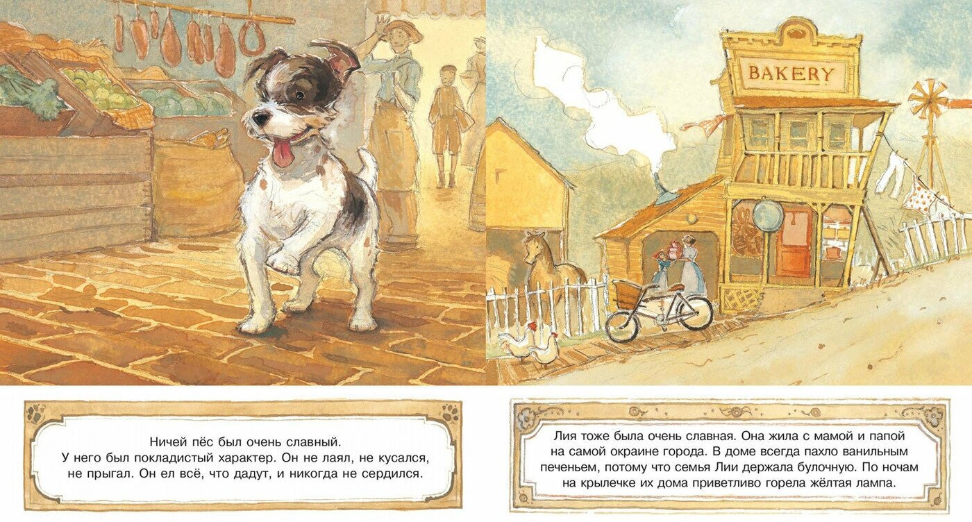 Ничья собака доверчиво бежит следом. Она очень хочет, чтобы её любили. Чтобы самый лучший человек на свете дал ей имя и подружился с ней. А за это собака готова подарить ему преданное сердце. В этой акварельной книжке – две нежные и трогательные истории о счастливой встрече одиноких детей и бездомных собак.