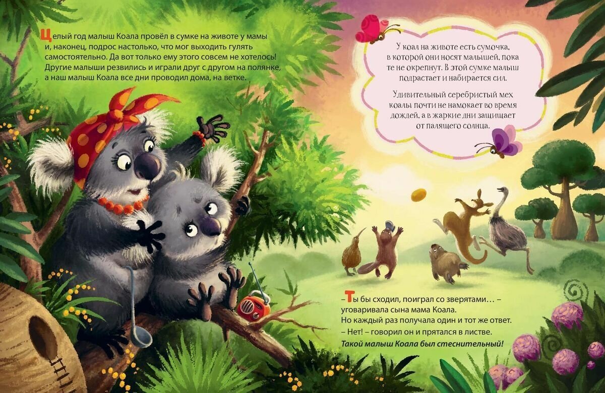 В далёком эвкалиптовом лесу жил малыш Коала. Такой он был маленький, такой хорошенький, но такой стеснительный! Однажды он отправился в небольшое путешествие и познакомился с самыми разными животными: утконосом, кенгуру, вомбатом... Отправляйся в путь вместе с малышом Коалой и узнай много удивительного и интересного про экзотических животных Австралии.