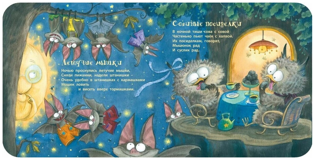 На землю спускается ночь. Стихают привычные звуки, прячутся в темноте знакомые предметы. Но ты не бойся, малыш! На небе ярко светит бабушка Луна, ей все-все видно даже в темноте. Вот енот отправляется на речку, а вот ежата с мамой собираются на прогулку, вот просыпаются филин, крот и мотыльки... Бабушка Луна расскажет тебе про них свои сказки, чтобы ты, малыш, сладко спал и ничего-ничего не боялся! Стихи бабушке Луне помогала сочинять Наталья Карпова, а иллюстрации к книге нарисовала Любовь Еремина-Ношин. Книжка напечатана на плотном картоне и ее легко перелистывать даже малышам.