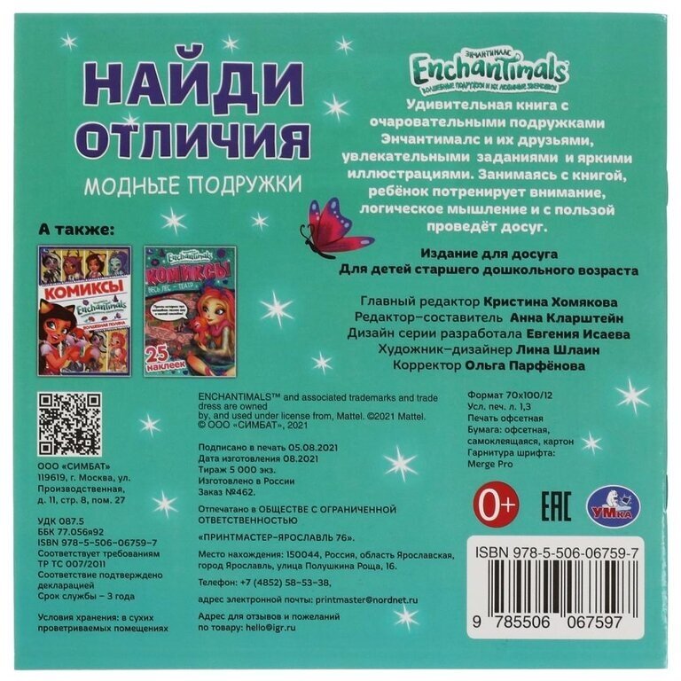 Сервис сравнения цен СкидкаГИД предлагает сравнить цены на товар «Книга: Книга Модные подружки. Найди отличия. Энчантималс. 225х225мм 12 стр. + наклейки. Умка (Автор не указан), 2022»
