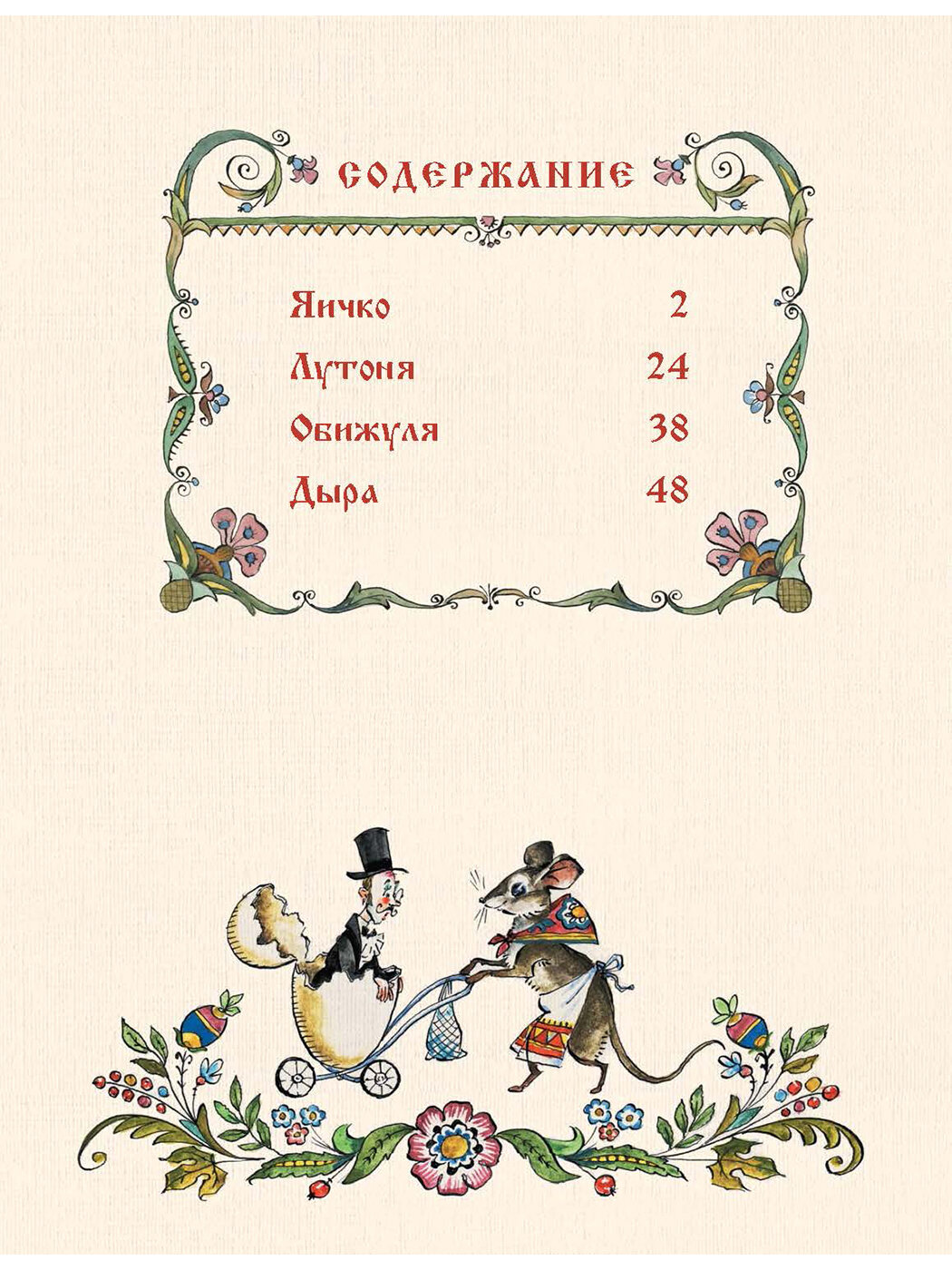 В книге собраны четыре сказки-потешки по мотивам русских народных сказок. Их написал и проиллюстрировал заслуженный художник России Анатолий Михайлович Елисеев. Тут и весёлые сюжеты, и узнаваемые русские образы, и тонкая ирония и, конечно же, великолепные иллюстрации мастера.Содержание:Яичко Лутоня Обижуля Дыра