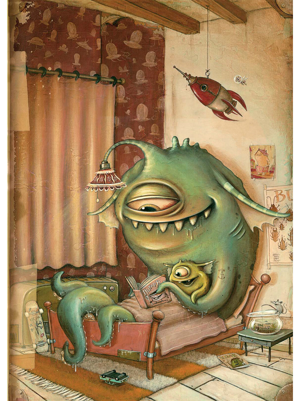 В одном необычном и странноватом доме однажды вдруг появилось неизвестное и таинственное чудовище. Оно бродит из комнаты в комнату и пугает обитателей жилища. Все домочадцы дрожат от страха! А ведь это не простая семья. Это семейка… монстров!Весёлая и загадочная история придумана всемирно известным дуэтом комиков Амбиликл-Бразерс по чудесным и "очень страшным" рисункам неповторимого Йохана Потмы.