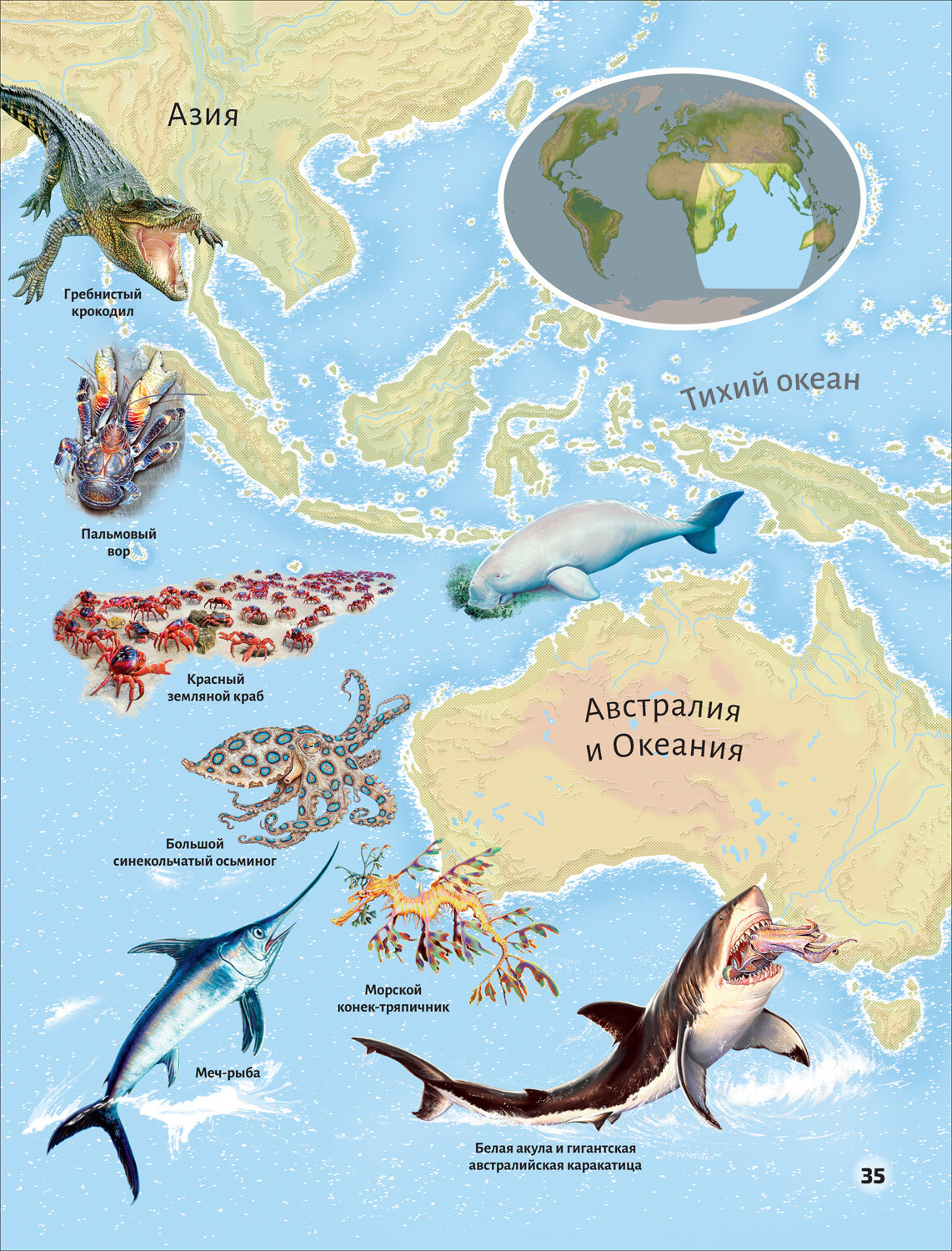 Эта книга предлагает читателю увлекательное путешествие по океанам нашей планеты. Вы познакомитесь с их обитателями, узнаете, для кого киты поют свои песни, что любит есть на завтрак морской леопард, почему Магеллановы пингвины сменили место жительства и др. Вы спуститесь на самое дно океана, встретитесь с существами, которых мало кто видел, посетите затерянные острова и полюбуетесь на водную гладь с высоты птичьего полета. А красочные иллюстрации и точные карты сделают это путешествие незабываемым!