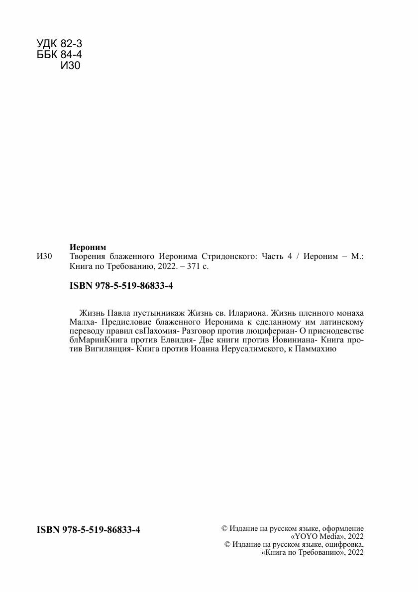 Книга Творения блаженного Иеронима Стридонского. Часть 4 (Блаженный Иероним Стридонский)