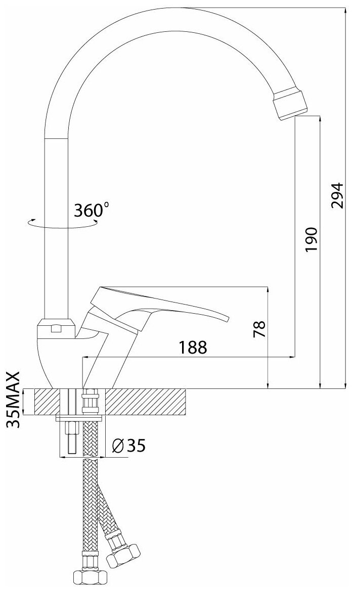 | ВКоробке | Смеситель - 1 шт. Комплект подводки - 1 шт. |