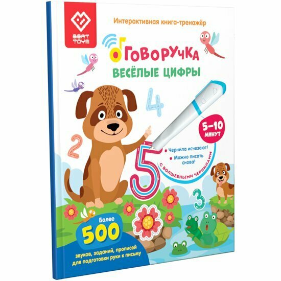 Более 500 звуков, заданий, прописей для подготовки руки к письму. Книга взаимодействует с Говоручкой, рассчитана для девочек и мальчиков. Пиши сколько хочешь! Волшебные чернила исчезают через 5-10 минут! В книге “Весёлые цифры” 24 страницы из плотного картона для частого использования. Яркие иллюстрации привлекут внимание ребенка. Задания для тренировки написания цифр, подготовки руки к письму. Польза от занятий: развитие речи, мышления, мелкой моторики, памяти, внимания, фантазии, воображения, интеллекта; расширение кругозора. Файл книги перед использованием нужно загрузить на игрушку. Комплектация: книга - 1шт