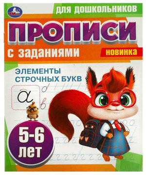 Прописи для дошкольников с заданиями «Элементы строчных букв» ТМ «УМка», для детей 5-6 лет, - отличный тренажёр для тренировки чистописания:- учимся писать правильно и красиво- удобный небольшой форматПрописи из данной серии помогут ребёнку развить зрительное восприятие, внимание и мелкую моторику, а забавные картинки и увлекательные задания подарят хорошее настроение.Игровые занятия с прописями ТМ «УМка» помогают подготовить руку к письму и способствуют развитию:- мелкой моторики рук- памяти- внимания- усидчивостиОбъём: 8 стр. Формат: 169 х 210 мм.Материал: офсетная бумага.Рекомендовано детям старшего дошкольного возраста.