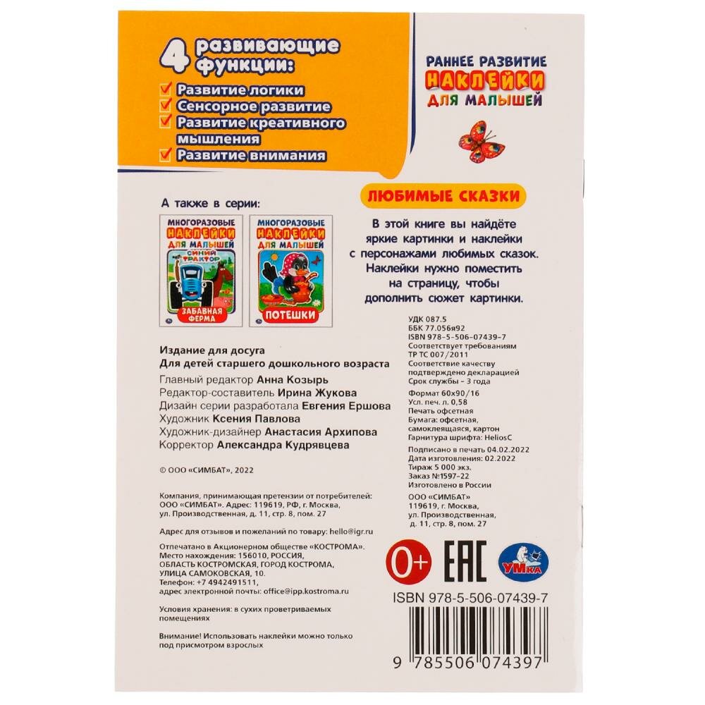 Любимые сказки. Многоразовые наклейки для малышей. 145х210 мм. Скрепка. 8 стр. (без автора), 2022
