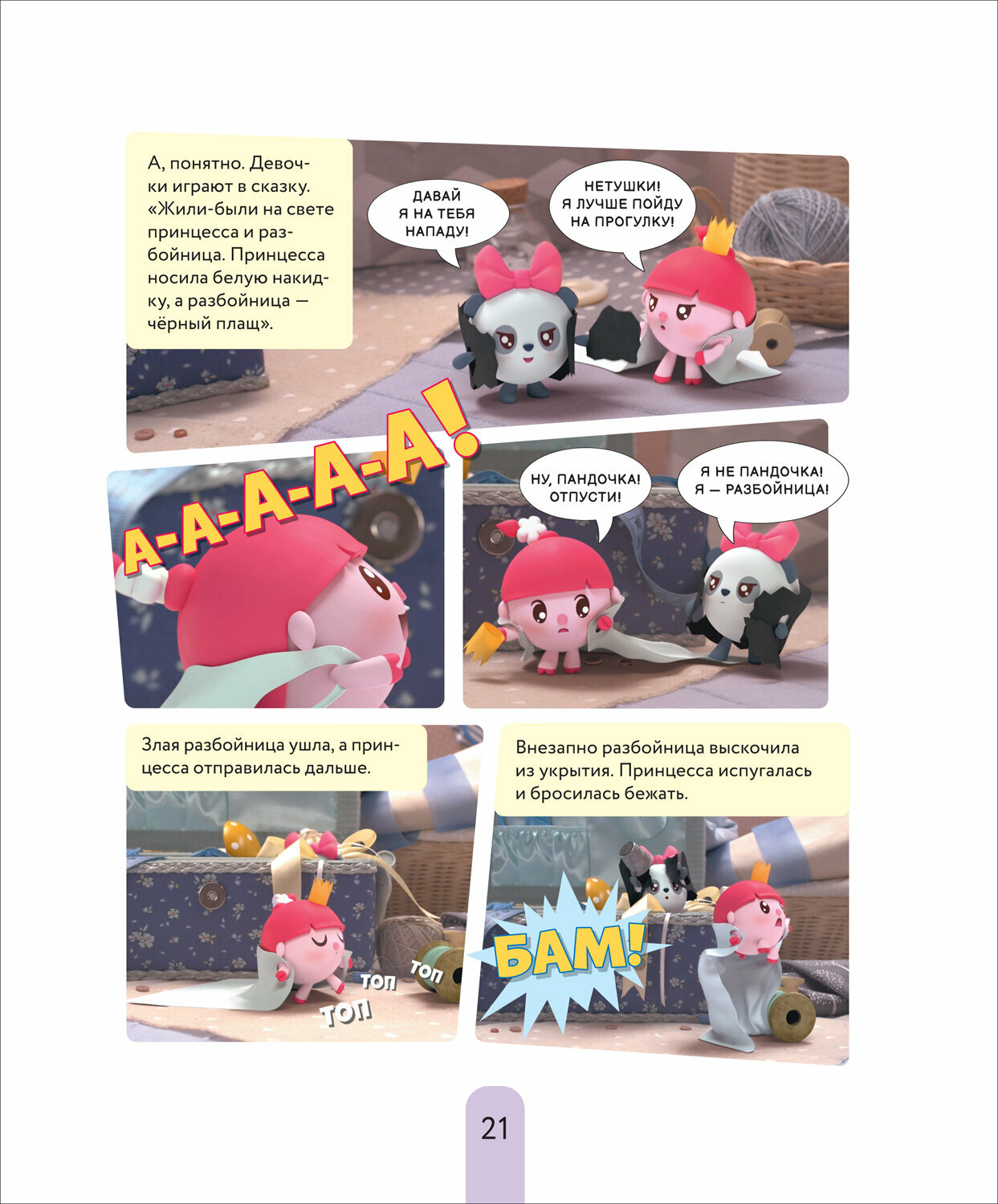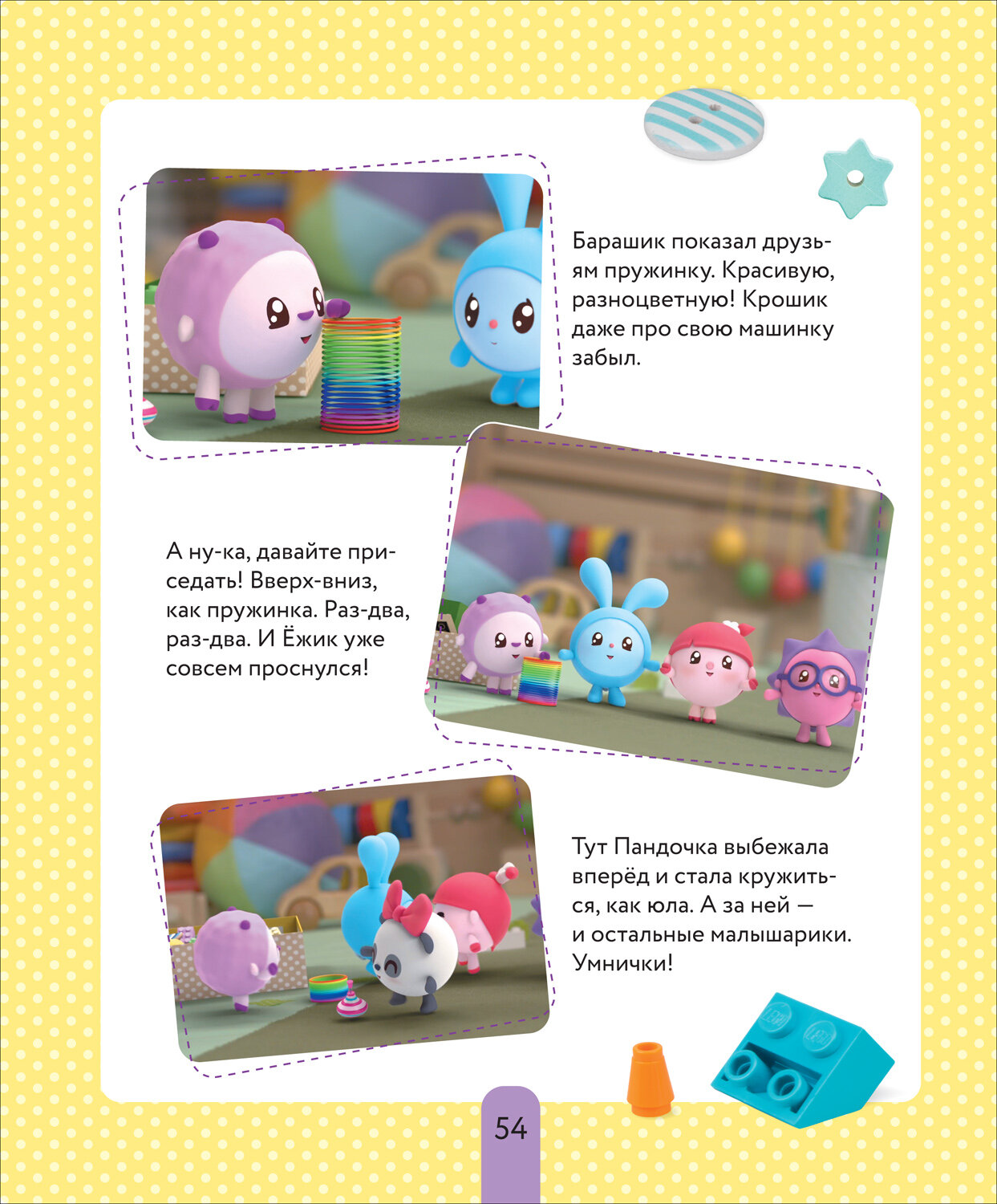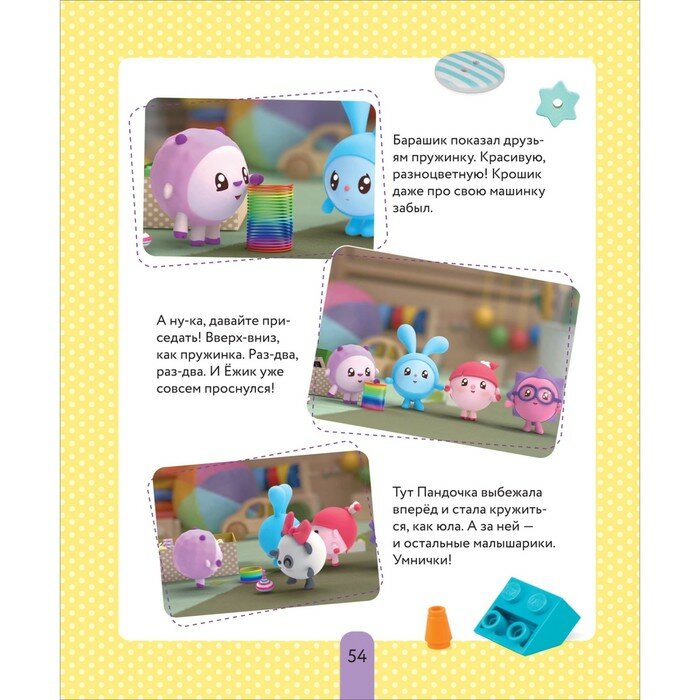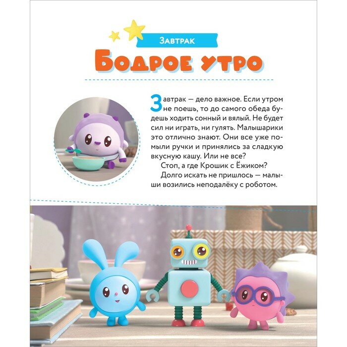 Малышарики выросли и пошли в детский сад. Что же их там ждет? Игры, прогулки, вкусные обеды, приключения и, конечно же, настоящая дружба. Вместе с любимыми героями ребенок узнает, что в детском саду совсем не страшно, а очень даже интересно и весело. Как не поссориться с приятелем, если вы оба хотите быть первыми? Почему нужно умываться? Что делать, если не можешь заснуть? Какие бывают вежливые слова? Малышарики помогут ребенку найти ответы на все эти и многие другие важные вопросы.
