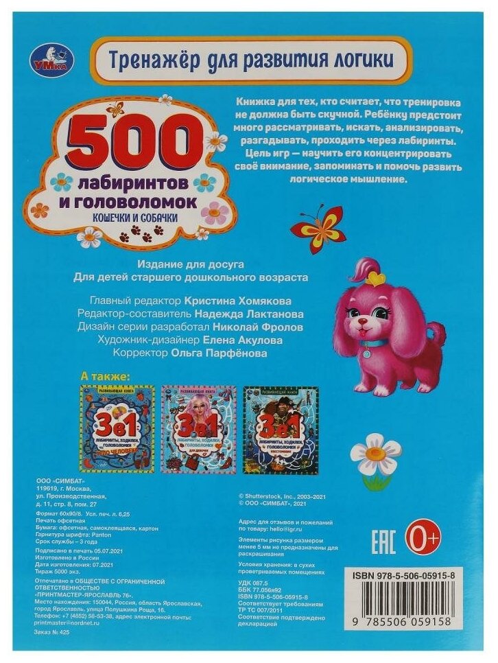 Сервис сравнения цен СкидкаГИД предлагает сравнить цены на товар «Книга: Книга Кошечки и собачки. Тренажер для развития логики. 500 лабиринтов и головоломок. Умка (Лактанова Н. - редактор-составитель); Умка, 2021»