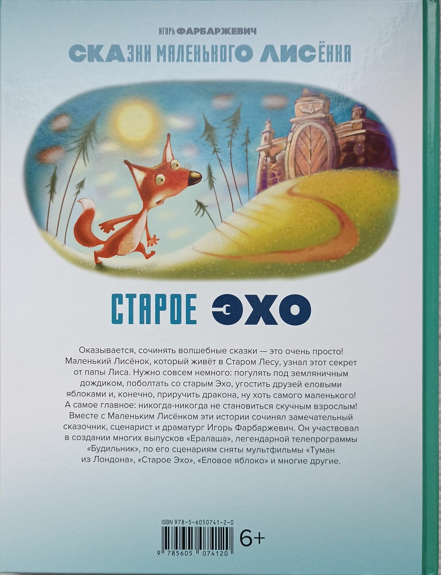 Оказывается, сочинять волшебные сказки - это очень просто! Маленький Лисёнок, который живёт в Старом Лесу, узнал этот секрет от папы Лиса. Нужно совсем немного: погулять под земляничным дождиком, поболтать со старым Эхо, угостить друзей еловыми яблоками и, конечно, приручить дракона, ну хоть самого маленького! А самое главное: никогда-никогда не становиться скучным взрослым! Вместе с Маленьким Лисёнком эти истории сочинял замечательный сказочник, сценарист и драматург Игорь Фарбаржевич. Он участвовал в создании многих выпусков "Ералаша", легендарной телепрограммы "Будильник", по его сценариям сняты мультфильмы "Туман из Лондона", "Старое Эхо", "Еловое яблоко" и многие другие.