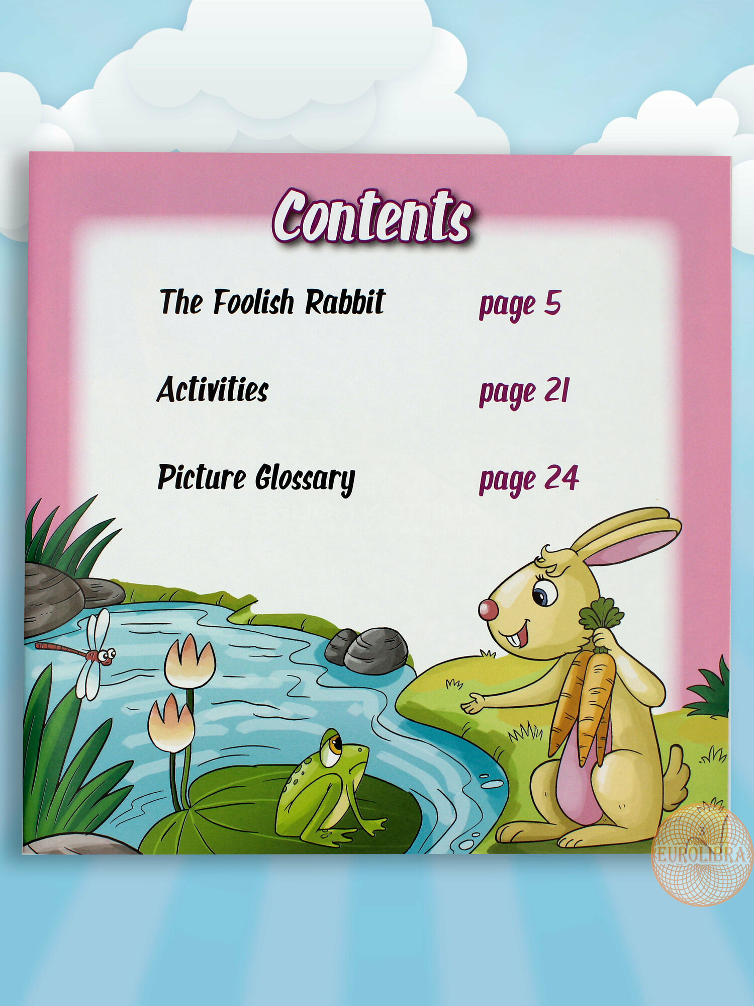 Книга на английском языке. Серия «Басни Эзопа» издательства Hamilton House - коллекция адаптированных историй по известным басням Эзопа для самых младших школьников. Каждая басня адаптирована, чтобы стать понятной для детей, начинающих изучать английский язык и получать удовольствие от чтения. История всегда содержит мораль, имеющую воспитательное значение. Все истории прекрасно иллюстрированы.Каждая книга включает:· Захватывающую историю, рассказанную простым языком;· Мораль, имеющую воспитательное значение, мотивирующую обсуждение, заставляющую детей задумываться;· Словарь в картинках;- Простые задания на соотнесение, раскрашивание и обведение объектов;· Яркие рисованные иллюстрации;· Электронная книгу с анимационным , профессионально озвученным мультфильмом.Басня "Глупый Кролик".Жил – был кролик, который любил преувеличивать и рассказывать небылицы. Однажды желудь упал ему на голову, когда он спал под деревом. Кролик стал рассказывать лесным обитателям , что небо скоро упадет на землю Все животные напуганы, но мудрая сова убеждает всех, что кролик говорит неправду и не нужно бояться.Мораль – не пугай понапрасну своих друзей.