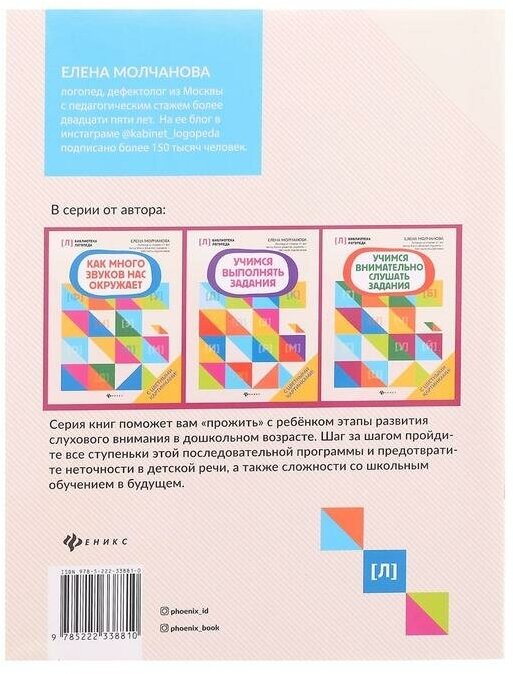 Серия книг поможет вам "прожить" с ребёнком этапы развития слухового внимания в дошкольном возрасте. Шаг за шагом пройдите все ступеньки этой последовательной программы и предотвратите неточности в детской речи, а также сложности со школьным обучением в б