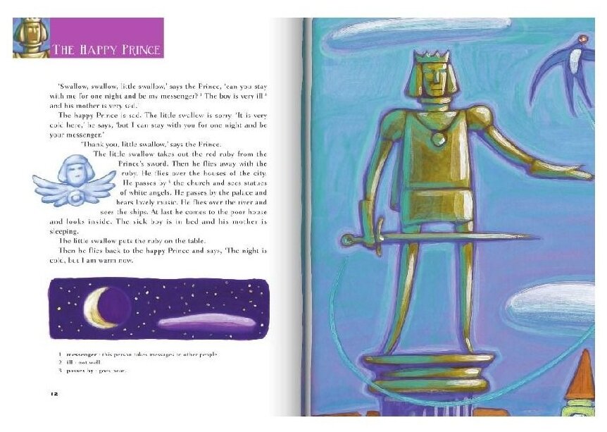 Oscar Wilde Retold by Elizabeth Ann MooreFairy tale & fantasyThe Happy Prince is the unforgettable story of the touching friendship between the golden statue of the Happy Prince and a little swallow. The enchanted garden of The Selfish Giant is the perfect place for children to play, until the Giant decides to keep it all for himself! Dossiers:Birds / Migratory BirdsGardensFlowers and others Exit test