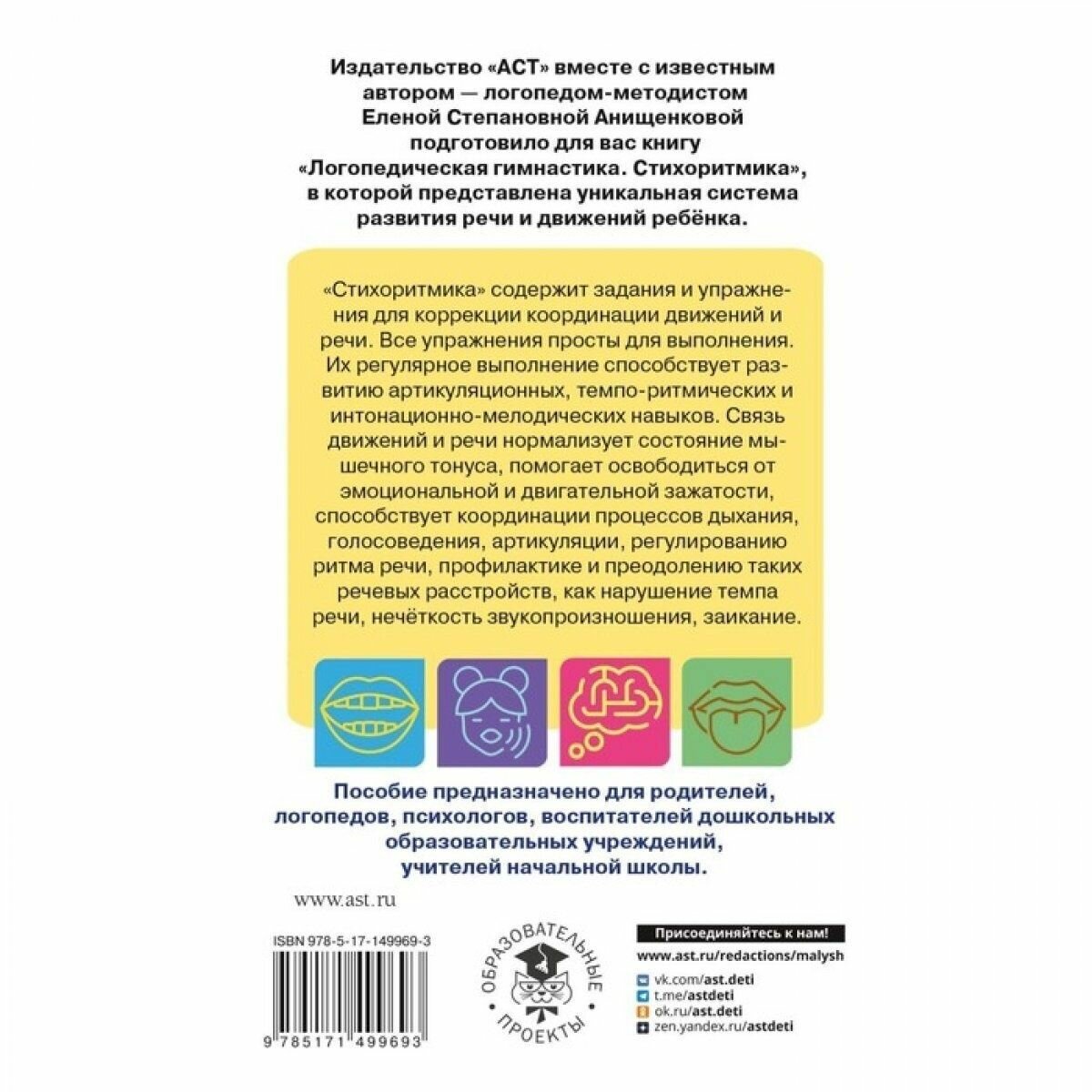 Книга Логопедическая гимнастика. Стихоритмика. Пособие для родителей и (Анищенкова Елена Степановна), 2022