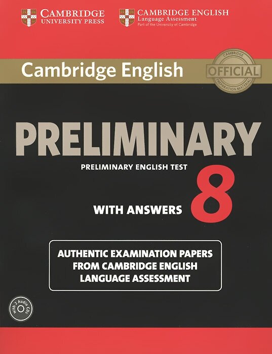 Four authentic practice tests for the Cambridge English: Preliminary (PET) exam from Cambridge English Language Assessment. These examination papers for the Cambridge English: Preliminary (PET) exam provide the most authentic exam preparation available, allowing candidates to familiarise themselves with the content and format of the exam and to practise useful exam techniques. The Student's Book with answers is perfect for independent exam practice. The accompanying Audio CDs contain the recordings for the Listening test. The Student's Book is also available as a 'without answers' edition for classroom use. The Audio CDs are also available separately.