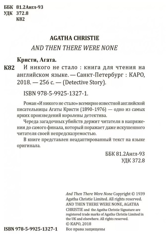 Сервис сравнения цен СкидкаГИД предлагает сравнить цены на товар «Книга: Книга Крист и Десять Негритят. кдч на Англ. Яз. Неадаптир. (Кристи А.), 2018»