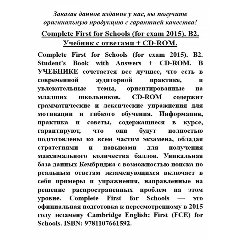Сервис сравнения цен СкидкаГИД предлагает сравнить цены на товар «Книга: Книга Complete First for Schools SB +ans +R Rev Exam 2015 (Guy Brook-Hart, with Helen Tiliouine); Cambridge University Press»