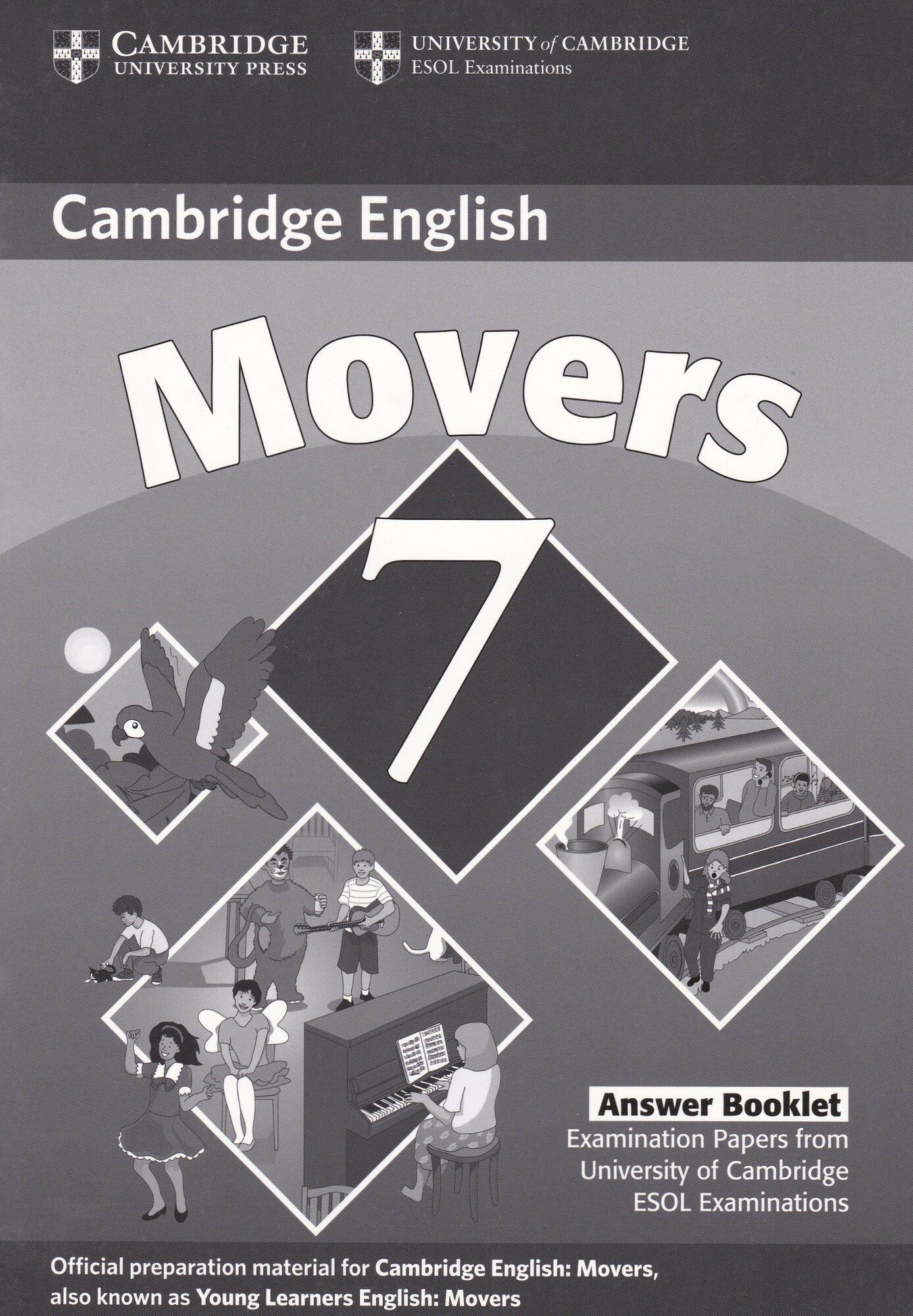 The Answer Booklet accompanies Cambridge Young Learners English Tests 7 Movers Student"s Book and Audio CD. The Answer Booklet contains answers for all three Movers tests, the tapescripts and examples of the type of interchange to expect in the Speaking test. It also includes the Cambridge English: Movers Vocabulary list, organised by theme.