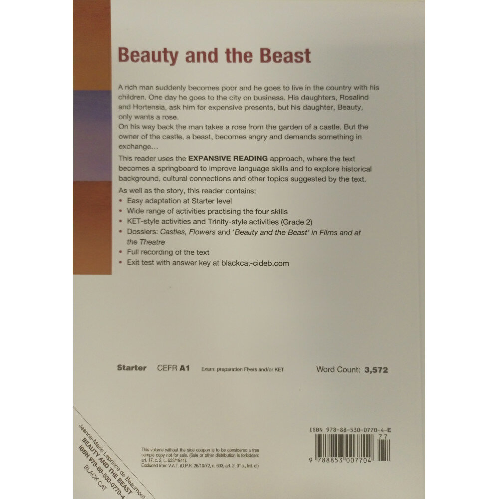 Jeanne-Marie Leprince de Beaumont Adaptation and activities by Gina D. B. ClemenFairy tale & fantasy A rich man suddenly becomes poor and he goes to live in the country with his children. One day he goes to the city on business. His daughters Rosalind and Hortensia ask him for expensive presents, but his other daughter, Beauty, only wants a rose.On his way back the man takes a rose from the garden of a castle. But the owner of the castle, a beast, becomes angry and demands something in exchange… Dossiers:CastlesFlowers‘Beauty and the Beast’ in Films and at the Theatre Exit test