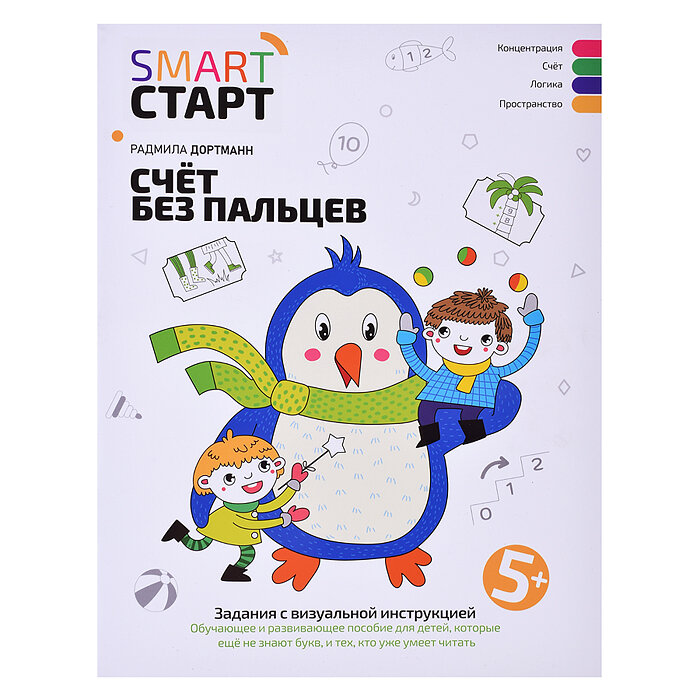 Каждая книга серии "Smart-старт" - это система заданий и упражнений, направленная на развитие конкретного навыка. Яркие и интересные задания серии "Smart-старт" разработаны с упором на визуальную инструкцию, что позволяет ребёнку легко (нативно) понимать и выполнять упражнения без участия взрослого. Данное пособие направлено на тренировку счётных навыков в пределах 10. Все задания и упражнения разработаны с учётом принципа наглядности, что облегчает обучение и восприятие учебного материала детьми, способствует развитию сообразительности, внимания и памяти. С этой книгой ваш ребёнок научится выполнять арифметические действия в уме, а не на пальцах. Пособие предназначено детям старшего дошкольного возраста.