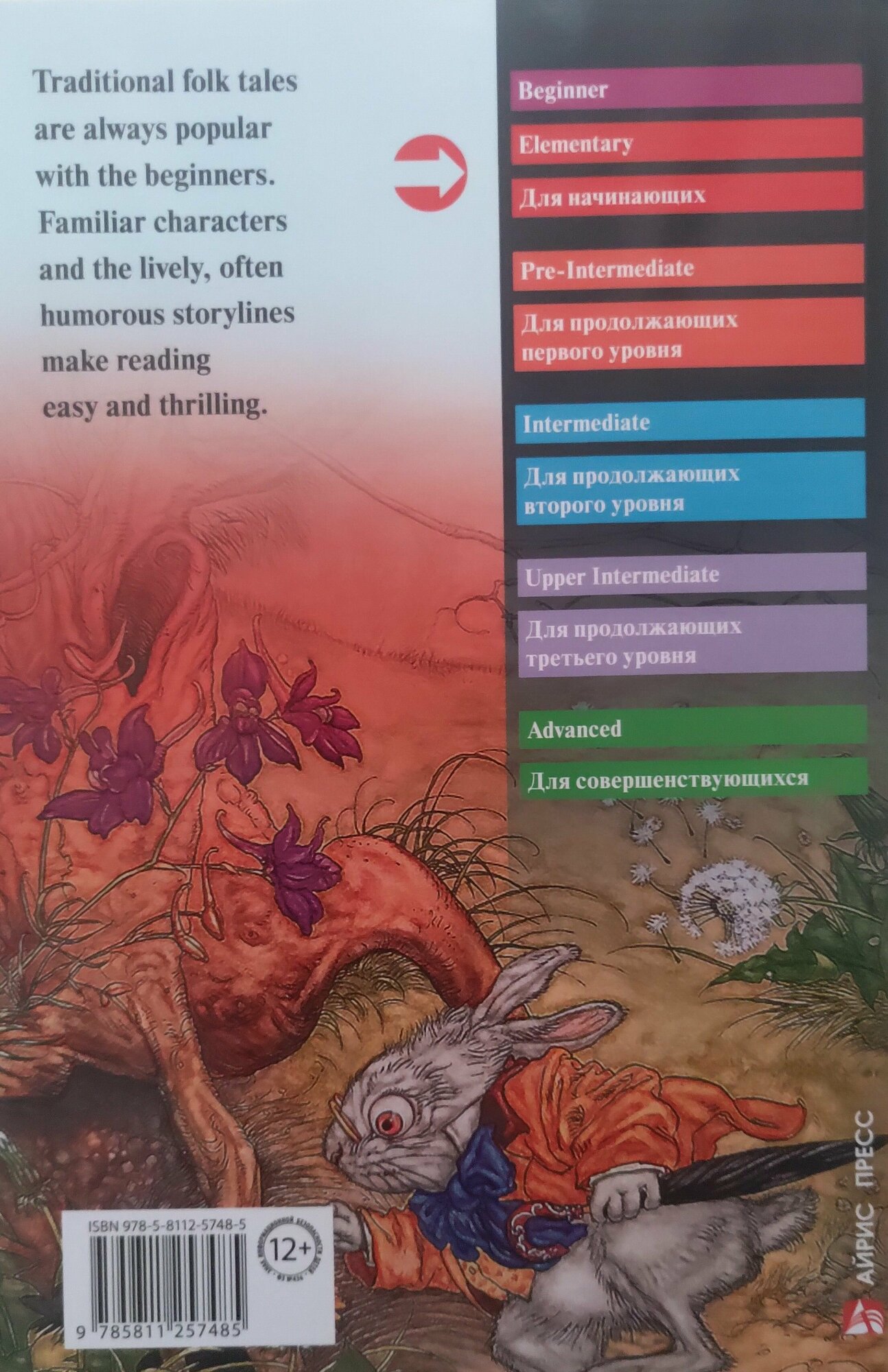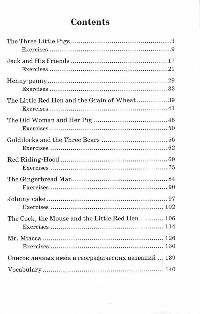 Очень нравится эта серия и данная книга в частности! Здесь больше 10ти классических сказок, очень интересных и несложных в восприятии. Для детей 4-5 класса вполне сойдут. После каждой истории есть упражнения, хотя некоторые всё же сложные для детей 4-5 класса, некоторые задания пропускаем. В самом конце книги есть словарь. Приятная мягкая обложка. Рекомендую, для детей - замечательная книга при изучении английского!