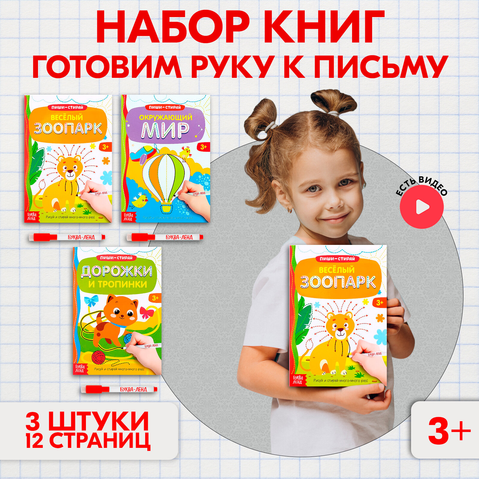 Книги Многоразовые С Маркером набор из 3 Шт Готовим Руку к письму №1 12 Стр Буква-Ленд (без автора), 2011