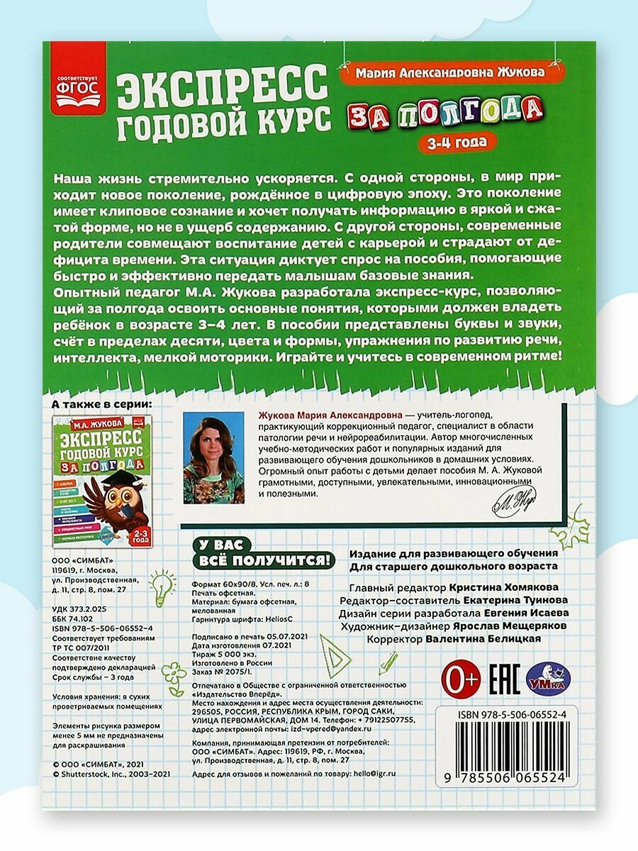 Книга 322846 Экспресс Годовой курс за полгода 3-4 года. М.А. Жукова. (Жукова Мария Александровна); Умка, 2021