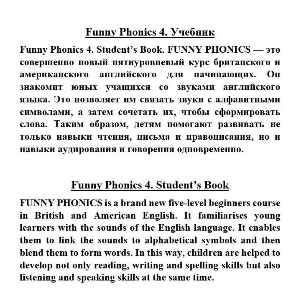 Funny Phonics знакомит учащихся со звуками английского языка и помогает им сначала установить связь между звуками и буквами алфавита, а затем образовывать из них слова. Таким образом, сначала формируются навыки аудирования и говорения, а уже потом чтения и письма.