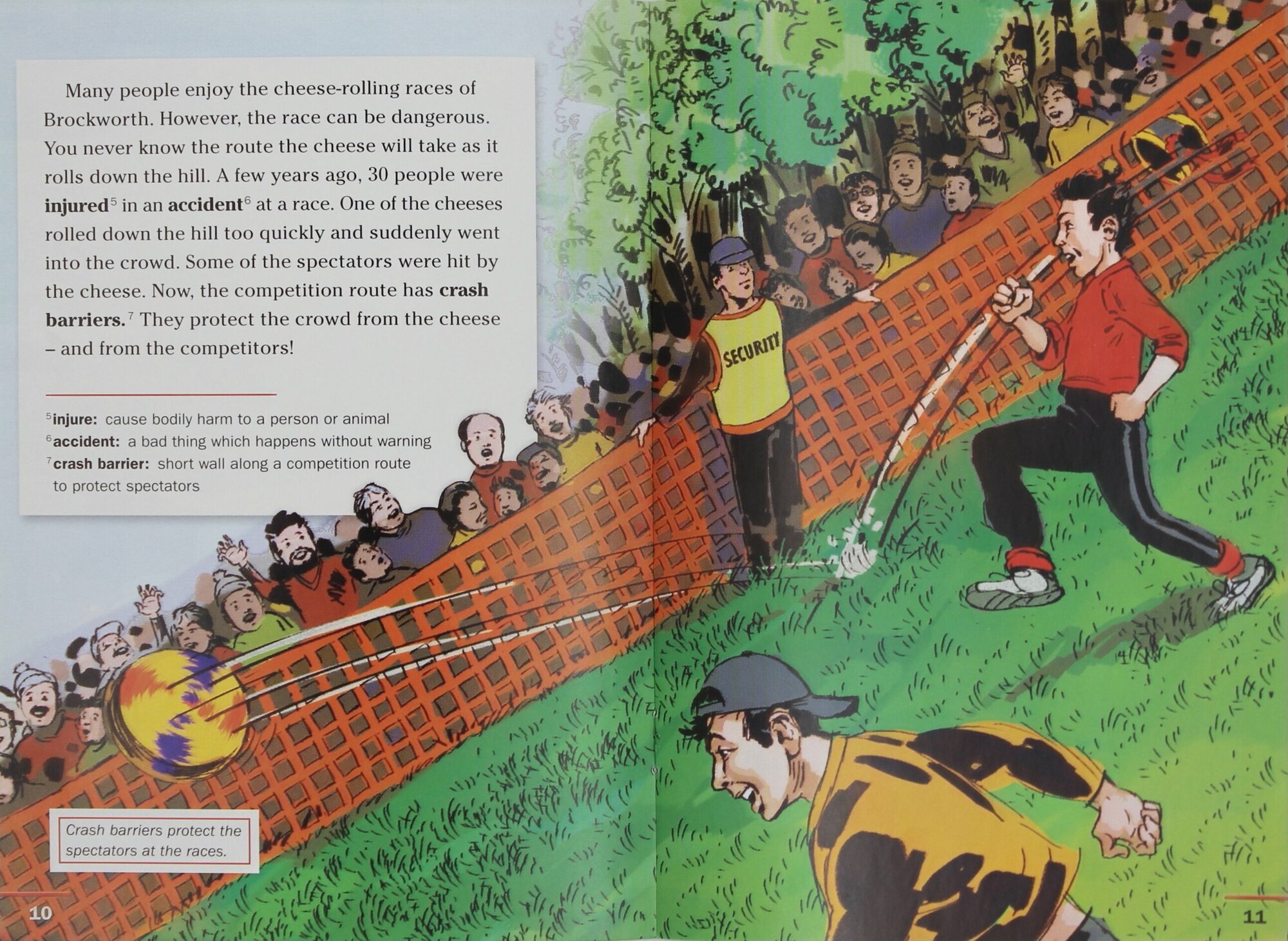 Many towns have special events. However, one town in England has a pretty unusual one. At the start, someone pushes a piece of cheese down a hill. Then, the people run after the cheese. And after that? Well, things get pretty funny! What happens?
