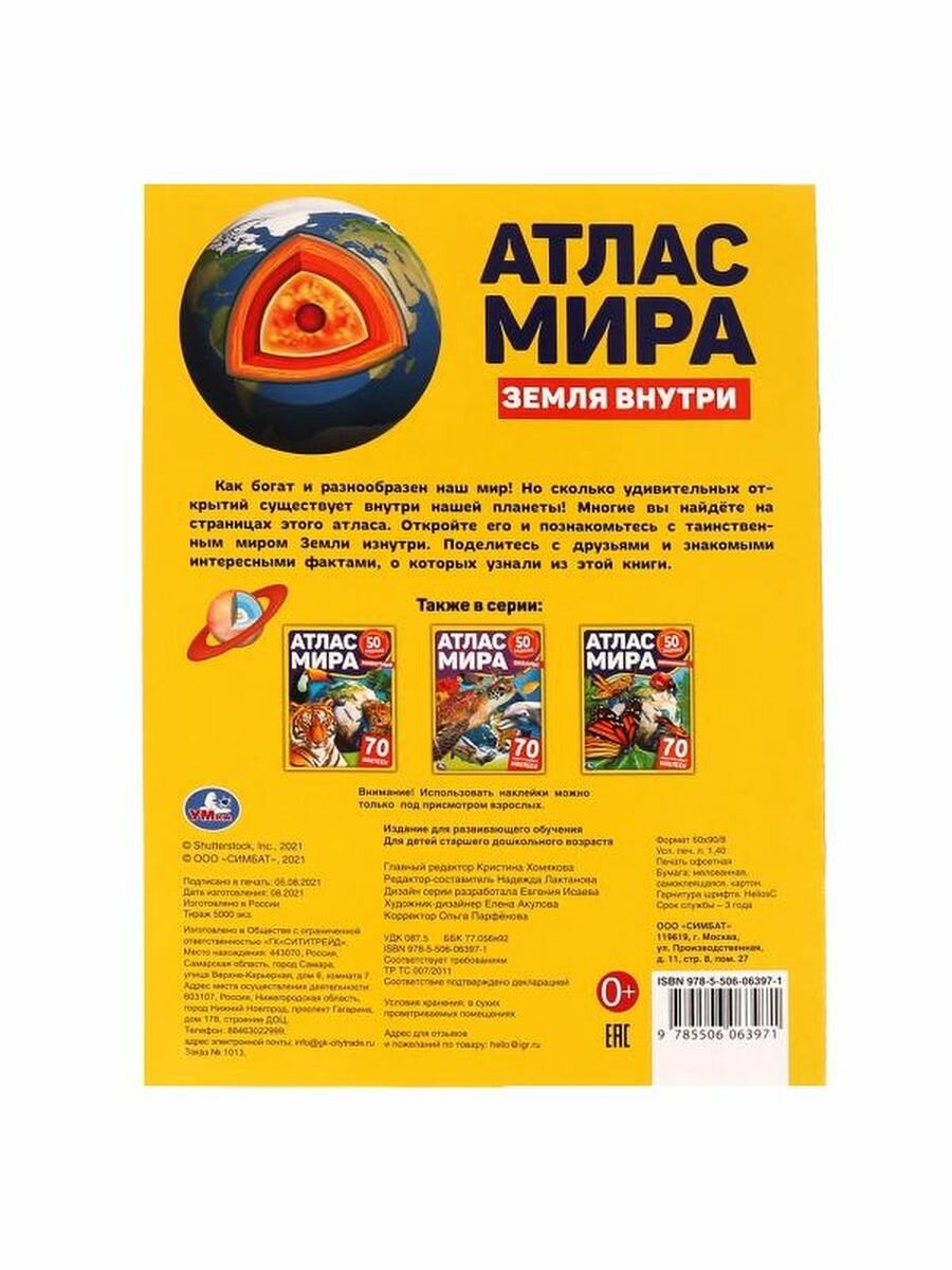 Книга Земля внутри. Атлас Мира 8 стр. УМка 978-5-506-06397-1 (без автора); Умка