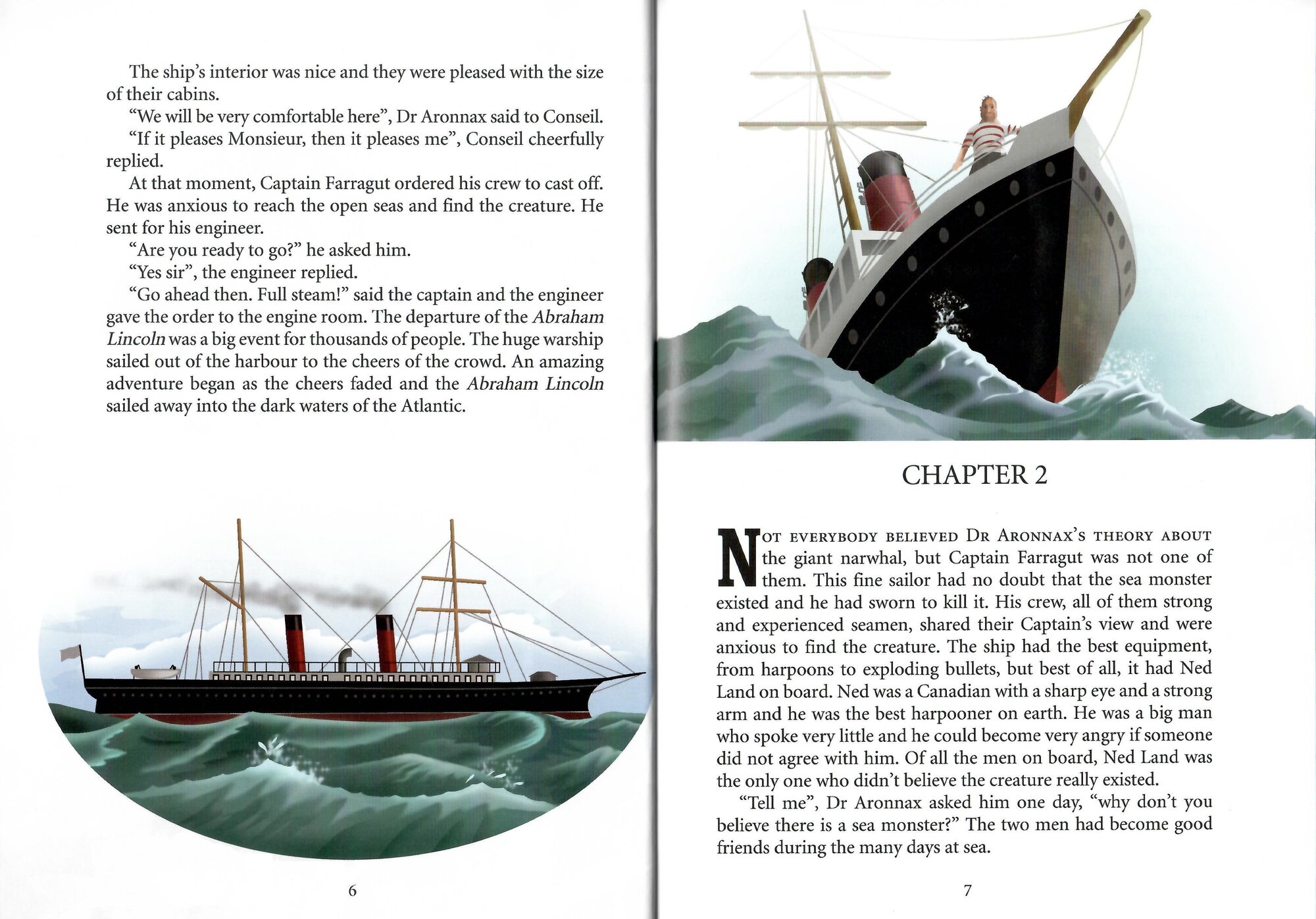 KET (Cambridge). Headwords 400. In this classic tale of courage and adventure, three men in search of a huge and dangerous sea monster suddenly discover that the creature is really a remarkable steel-plated submarine called the Nautilus.