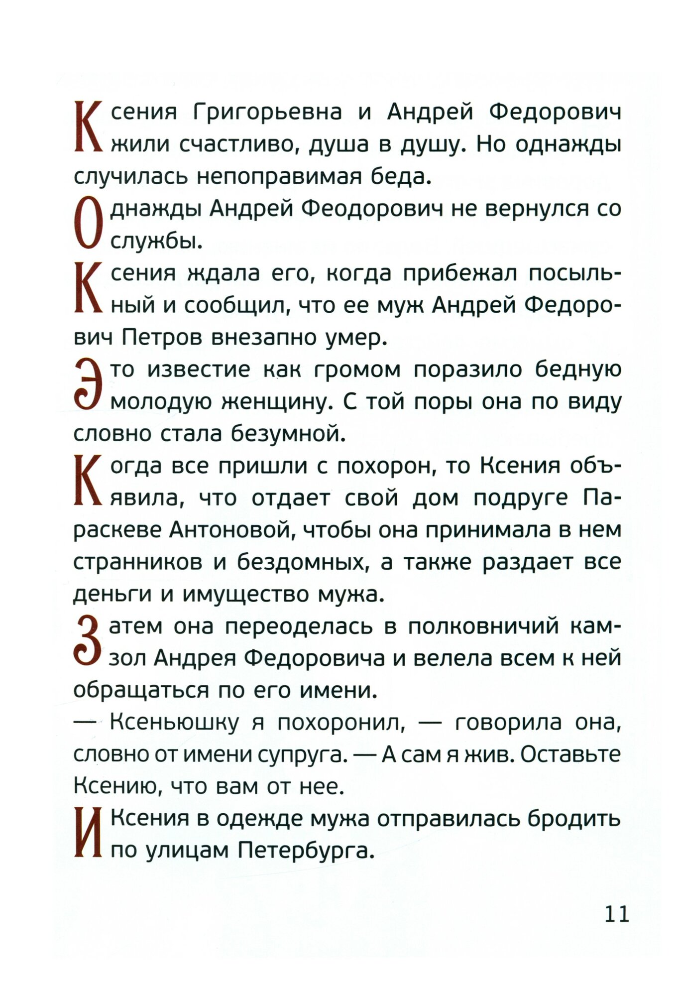 Святая Блаженная Ксения Петербургская - известная православная подвижница, совершавшая свой подвиг служения Богу и ближним в XVIII веке. Житие, рассказаноое в доступной форме рассказов для детей, познакомит с удивительной историей этой святой, а красочные иллюстрации дополнят историю для юных читателей.