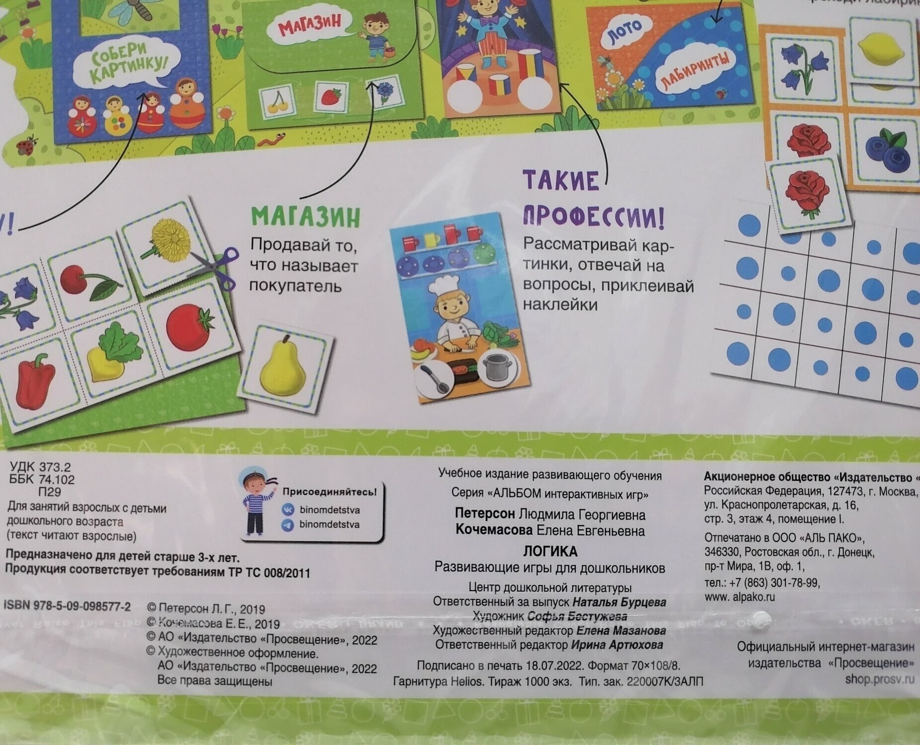 Книга Логика. Развивающие игры для дошкольников (Петерсон Людмила Георгиевна, Кочемасова Елена Евгеньевна); Бином, 2023