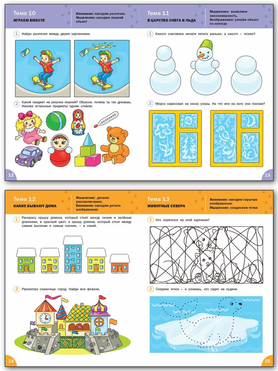 Пособие по развитию интеллектуальных способностей может быть использовано для занятий с детьми 3-4 лет как дома, так и в дошкольной образовательной организации. Занимательные упражнения и задания помогут вашему ребёнку улучшить внимание и память, развить мышление и воображение, расширить кругозор, стать более смышлёным и сообразительным.