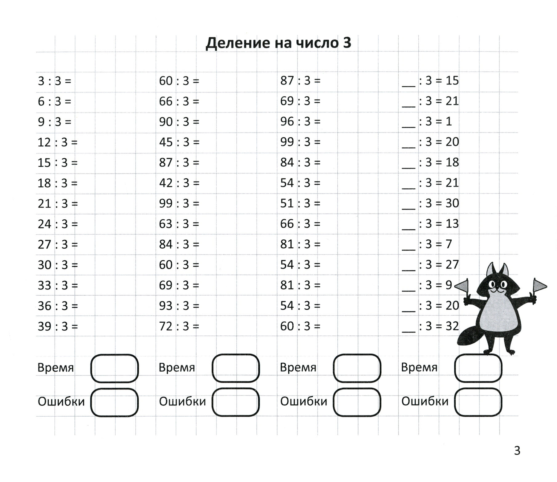 Серия тренажёров для развития навыков счета позволит легко и быстро освоить сложение, вычитание, умножение и деление, благодаря обширному комплексу примеров. Кроме того, в конце каждой страницы будет специальное место, где можно отметить количество допущенных ошибок и время, потребовавшееся ребёнку для решения примеров – таким образом, страница за страницей можно будет проследить за прогрессом в освоении важнейших базовых математический действий.